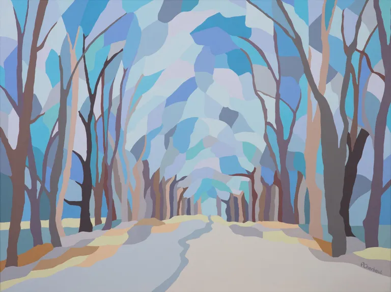 Focused mainly on landscapes devoid of human presence, her paintings convey silence, stillness, and a solitary, natural serenity—capturing fleeting moments that feel eternal. The real and the imaginary intertwine seamlessly in her compositions, inviting a contemplative and soothing state of mind.