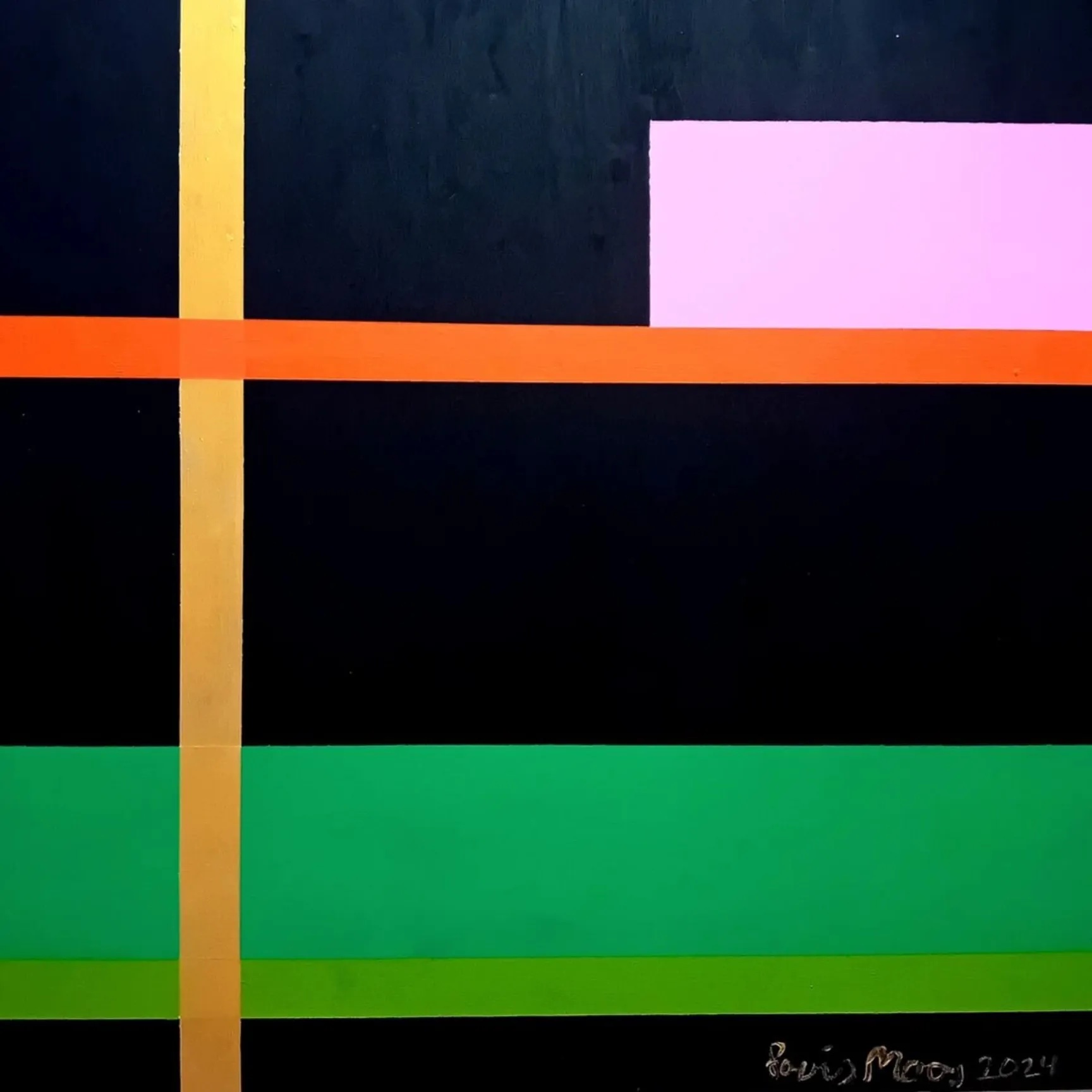 Lovis Moos (b. 1983, Melbourne) is a Swiss-based painter and collage artist whose acrylic works on wood, jute, and paper blend bold colors and geometric forms in square compositions. Rooted in personal resilience and inspired by nature and daily life, her precise visual language balances structure with expression, offering moments of calm and reflection. Moos has exhibited in London, Zurich, Bern, and Biel/Bienne, securing her place in the contemporary art scene.