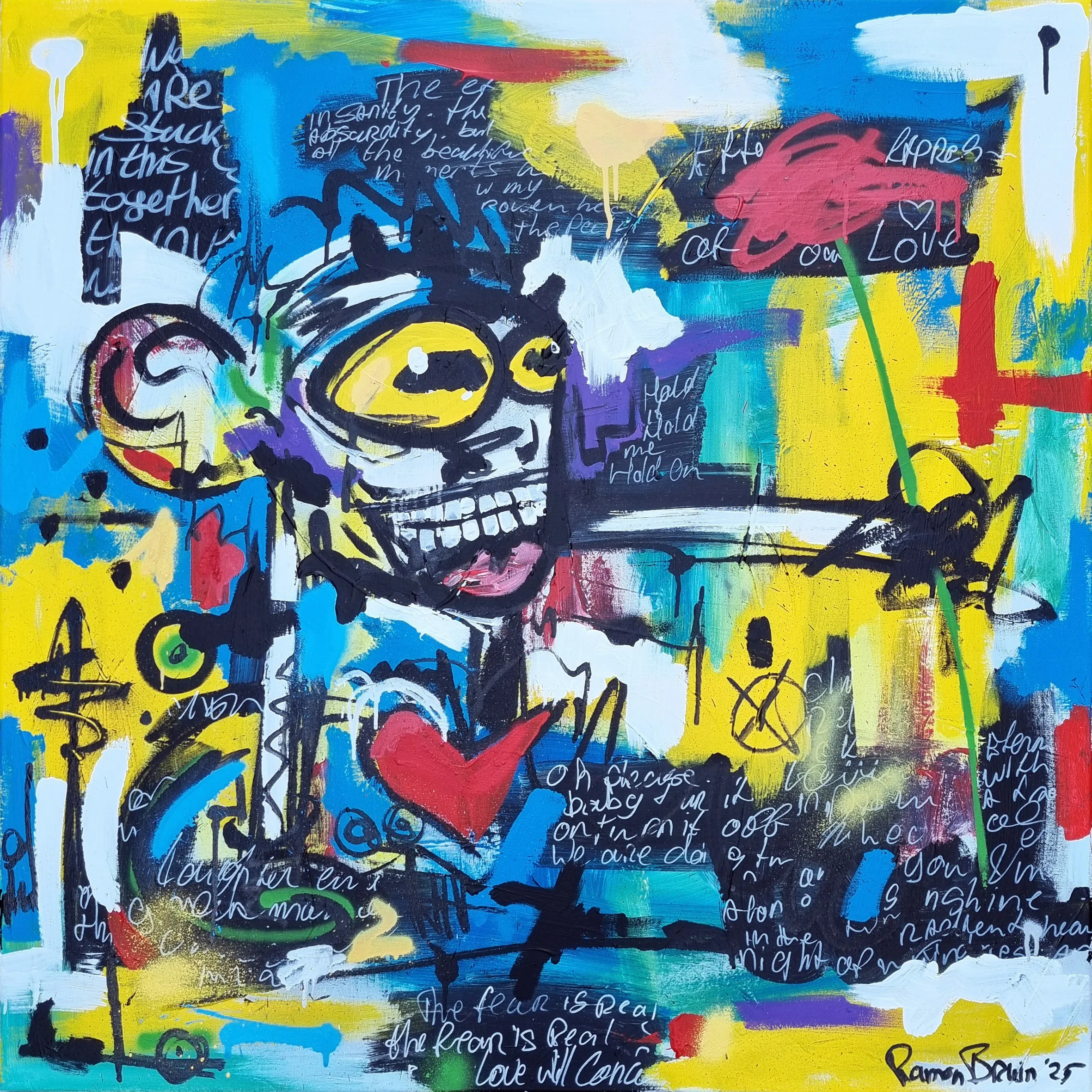 Ramon Bruin is an experienced artist from the Netherlands whose paintings have been featured in solo and group shows internationally. Working in the styles of abstract-expressionism and pop art, Bruin creates vibrant paintings in mixed media that emphasize contrasts between colors and forms. He adds a light sense of humor to his artworks, hoping to bring joy to viewers.