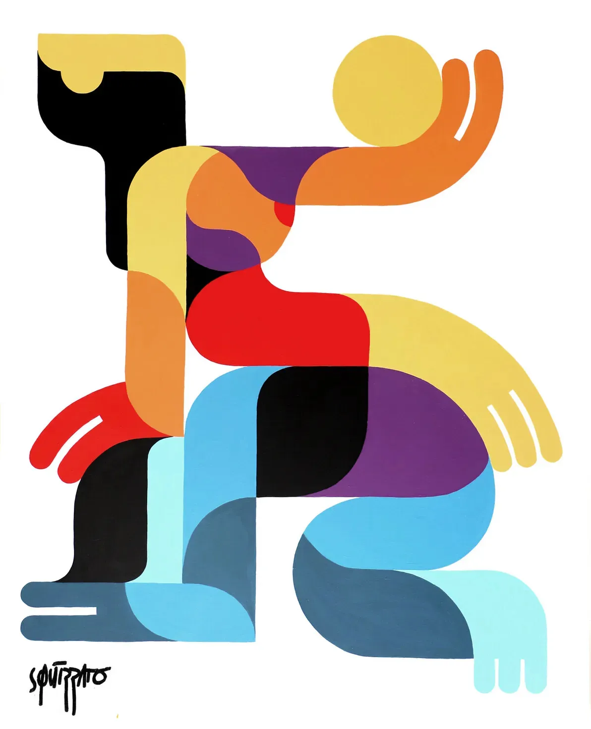 In this piece, Antony Squizzato blends geometric and semi-abstract elements to capture both movement and essence. The vibrant tones and pop art influence invite both reflection and joy. Through clean shapes and bold composition, the work aims to evoke universal human emotions.