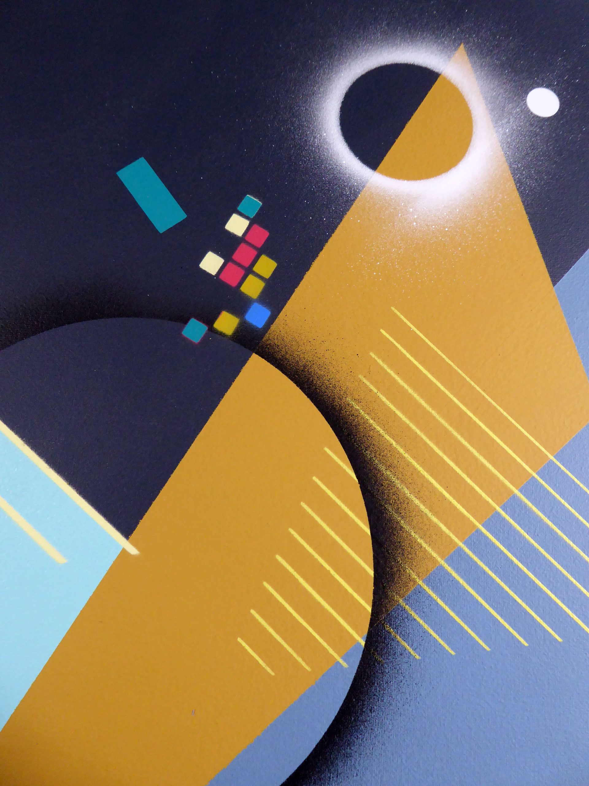 "Where sounds find form and color" Thierry Corpet - French artist, lives and works in Corsica At the crossroads of visual arts and music, Thierry Corpet draws inspiration from William Burroughs' "cut-up" technique to create hybrid works, where superimpositions and geometric forms translate the emotions arising from listening. Without claiming synesthesia, he seeks to capture the ephemeral and give tangible form to what is usually perceived by the ear. Each canvas, each sculpture becomes his visual score — an invitation to see his perception of music, to feel the forms and to listen with the eyes. His work is regularly exhibited in France and internationally. In particular, it was presented at the "Comparaisons 2026" exhibition at the Grand Palais in Paris, in the Geometric Abstraction group.