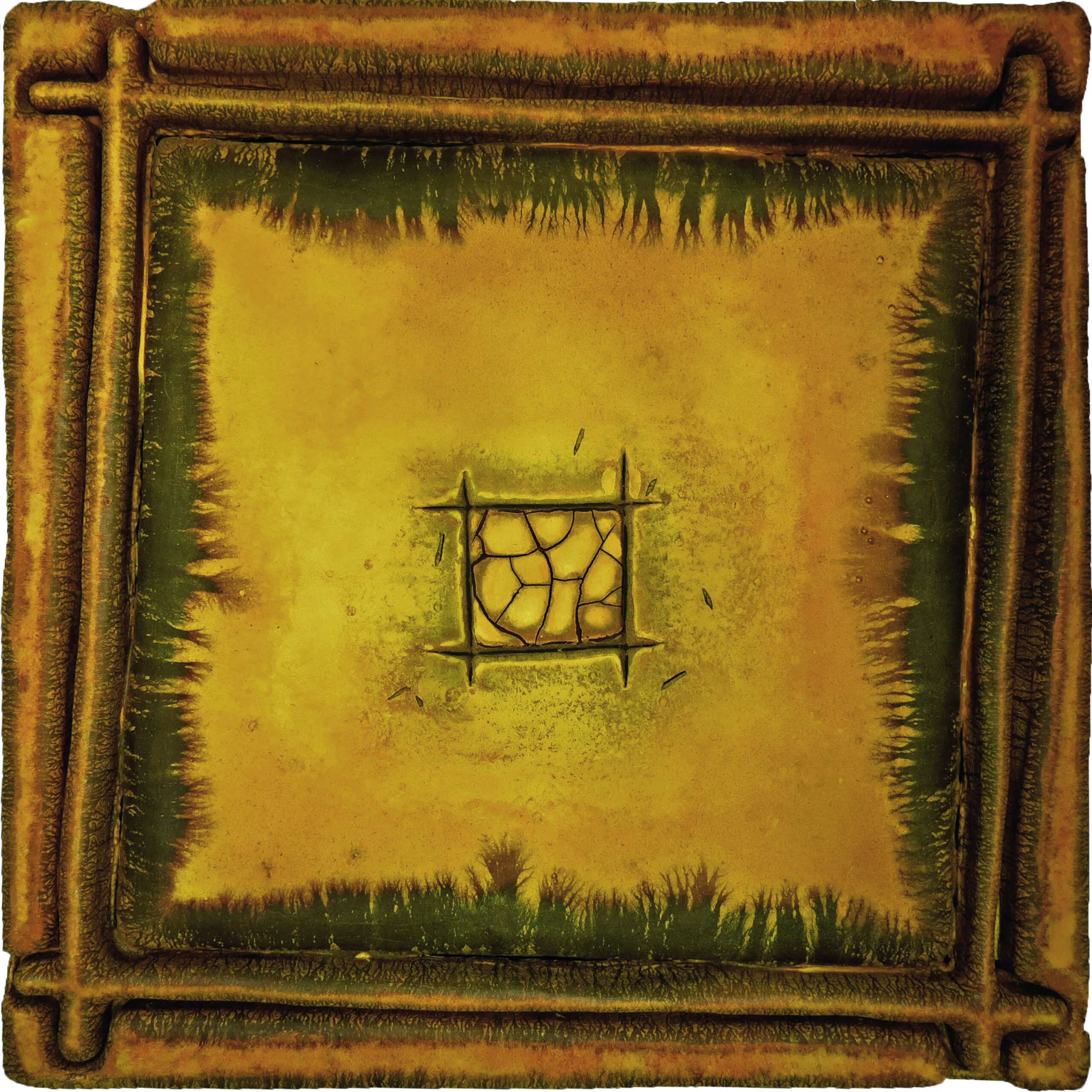 Pretendo llevar a quien contemple esta obra a un viaje simbólico hacia otros mundos, usando formas y colores que evocan la tradición y lo sagrado del altiplano. La figura a escala 1:220 que aparece en el lateral de esta obra es parte crucial del contenido de la obra, pues, gracias a ella, se nos muestra sobredimensionada. La Naturaleza se revela entonces en su verdadera dimensión. Esta pieza emana una energía que llenará cualquier hogar de misterio y reflexión.