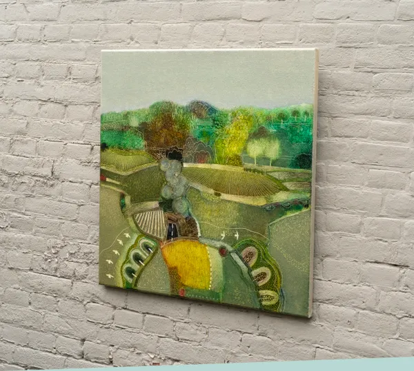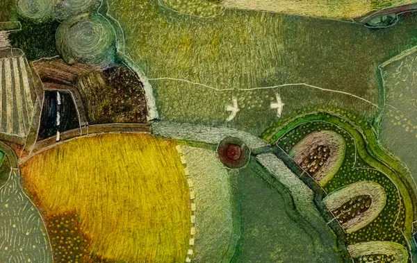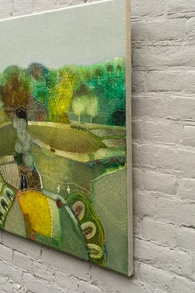 Rob van Hoek is a seasoned artist from the Netherlands who has showcased his work in both solo and group exhibitions around the world. Inspired by frequent visits to art museums in his childhood, he eventually developed his own artistic practice. Van Hoek creates textured, patchwork-style landscapes using oil and cold wax on canvas. His paintings blend complementary color schemes and rich textures, offering a semi-abstract interpretation of traditional landscape painting.