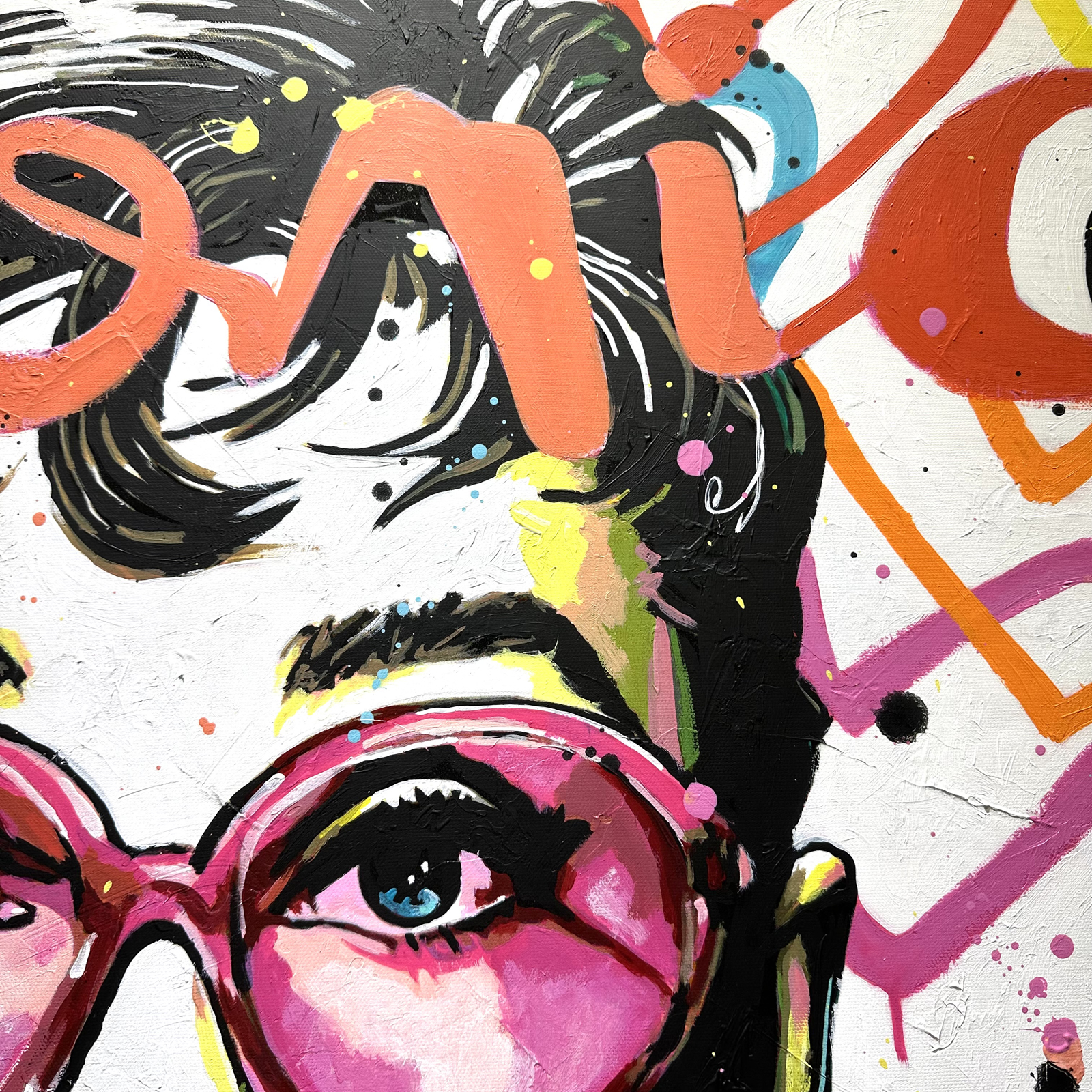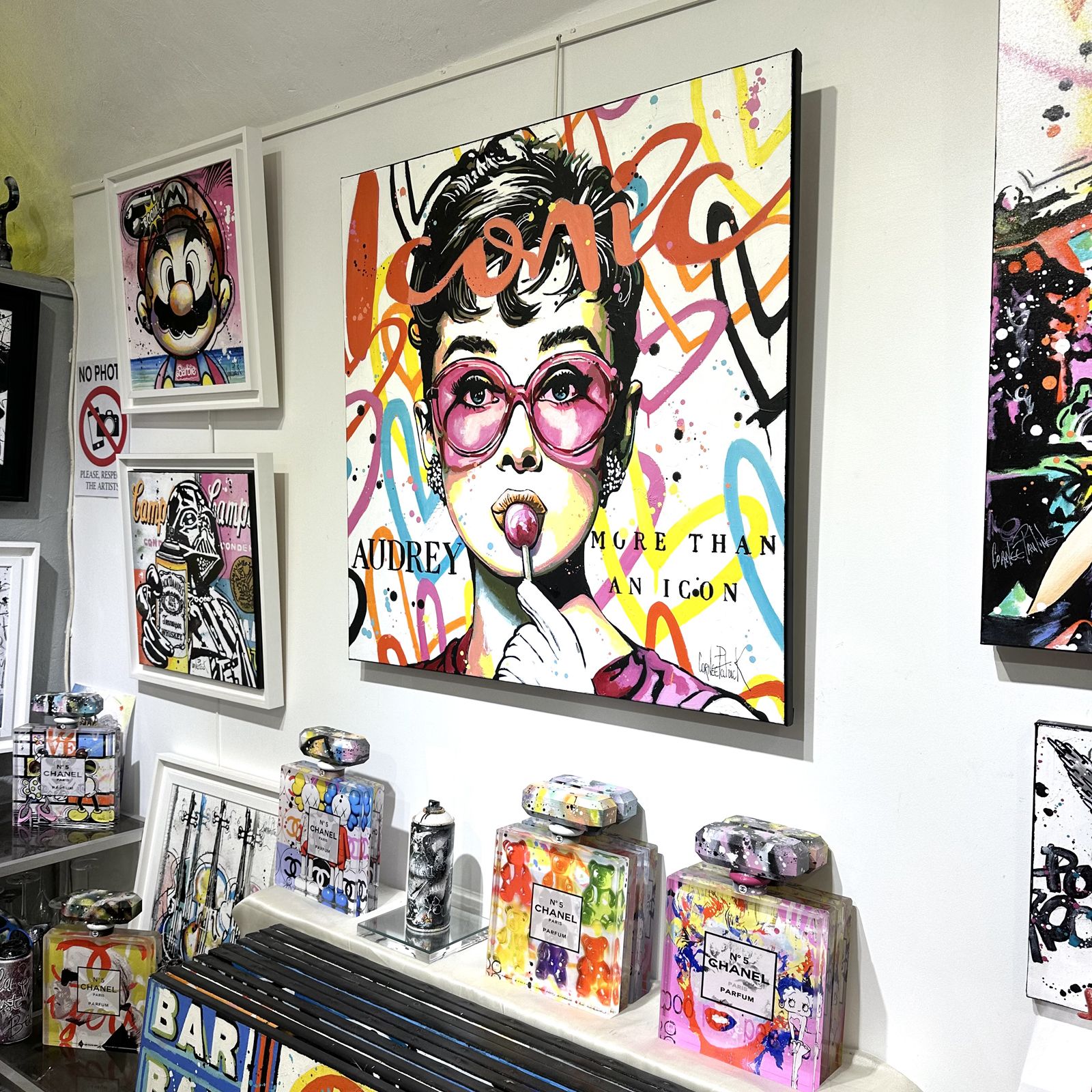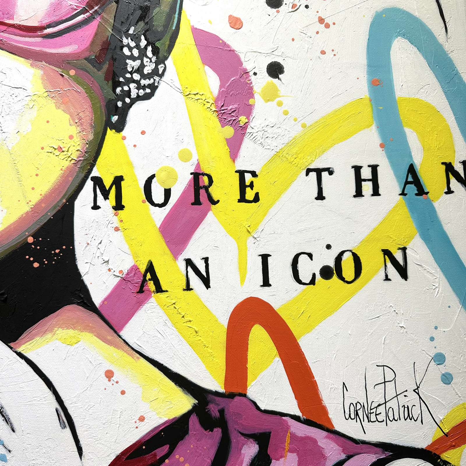 J'ai voulu capturer l'énergie vibrante et l'aura intemporelle d'Audrey Hepburn dans cet éclat pop et vintage. Le mélange d'acrylique, d'huile et de graffiti crée un contraste dynamique, exprimant à la fois son élégance classique et une modernité éclatante. Cette œuvre apporte une touche de fraîcheur et de joie à tout espace, célébrant l'icône avec une explosion de couleurs et de vie.