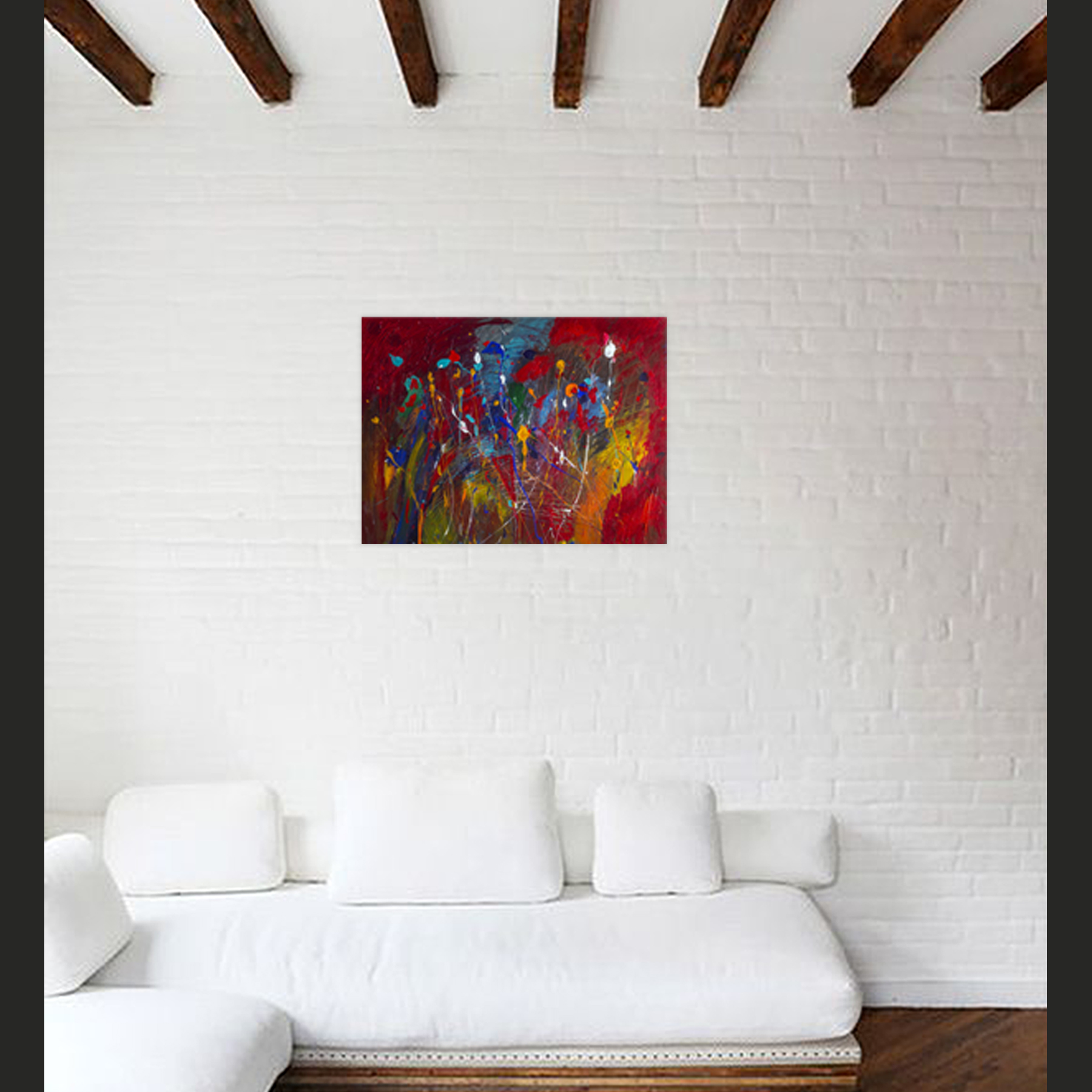In this vivid, expressive piece, organic forms and erratic lines clash and intertwine like opposing forces. The composition evokes a visceral energy, drawing from the chaos of conflict and the resilience of nature. Influenced by abstract expressionism, I applied thick textures with both brush and palette knife. Bold reds, piercing blues, and bursts of yellow create a chromatic tension. The work is a dance between destruction and emergence—a battlefield of emotions on canvas.