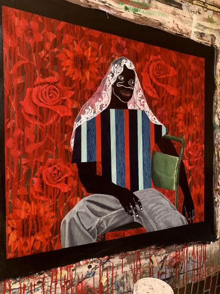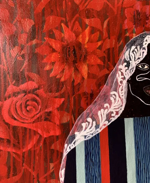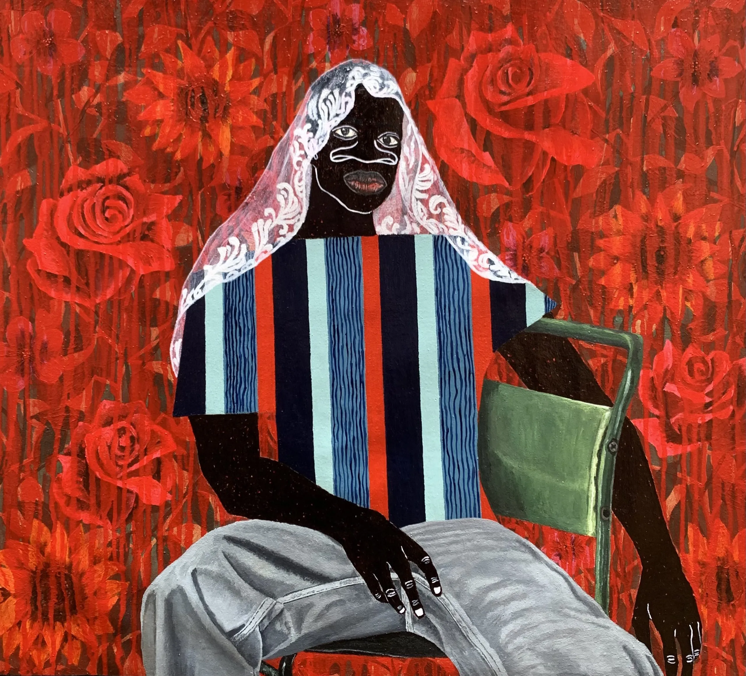 Akintomide Akinshola (b. 1995) is a contemporary visual artist from a lineage of crop farmers in the historic city of Ondo, Ondo State, Nigeria. He currently lives and works in Lagos. From a young age, he showed a deep curiosity for art, experimenting with everyday materials to express his imagination. This early passion guided him toward a degree in Fine and Applied Arts Education at Obafemi Awolowo University, Ile-Ife.Over the years, Akintomide has participated in several group exhibitions both in Nigeria and abroad, steadily building a distinctive visual language. Akintomide’s artistic practice explores identity, culture, and the complexities of human relationships. Through the use of ink and acrylic compositions, he creates figurative pieces that reveal the beauty, fragility, and resilience of human bonds. His exaggerated facial features, especially the nose serve as both personal symbol and narrative device, rooted in childhood experiences of being taunted, yet transformed into marks of strength and individuality.Influenced by his environment, cultural heritage, and personal experiences, Akintomide captures intimate scenes that invite reflection on how relationships shape and transform us. He also brings together African and non-African fabric patterns, reimagining their historical and cultural connections. Through this fusion, his art becomes both a celebration of shared humanity and a visual dialogue on identity, belonging, and the power of connection.