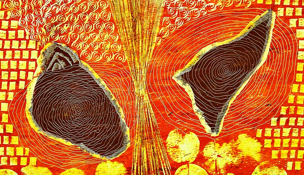 This piece celebrates the profound connection with the earth and nature, embodying profound cultural narratives through its symbolic and artistic expression.