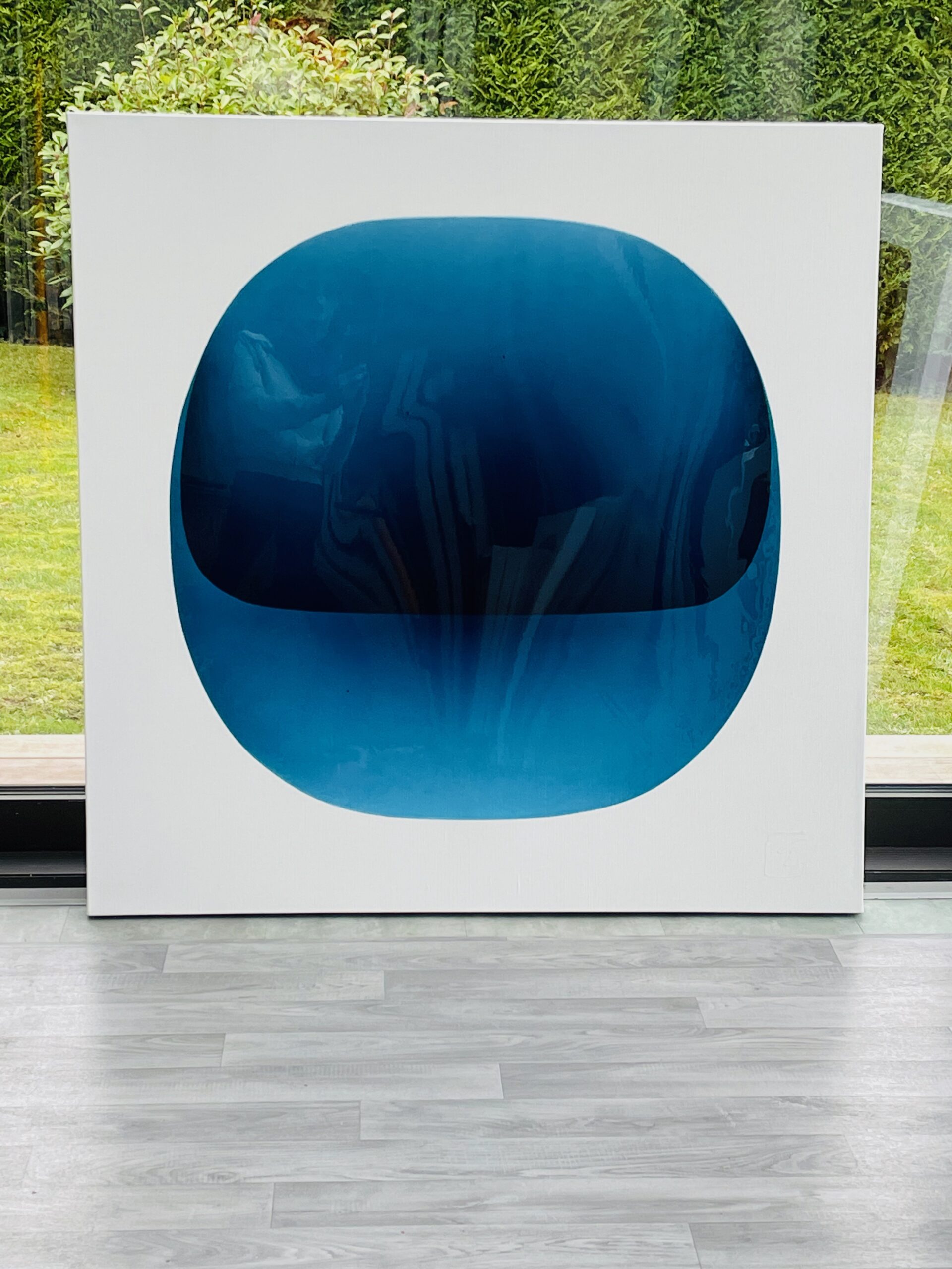 Dans cette œuvre, j'ai cherché à capturer l'essence de la sérénité à travers l'abstraction. Utilisant de la résine, j'ai créé une profondeur presque océanique, une invitation au calme et à la réflexion. Les nuances de bleu, dégradées subtilement, évoquent les mystères infinis du ciel et de la mer. Ce tableau minimaliste est un havre de paix pour l'esprit, un souffle de tranquillité pour votre intérieur.