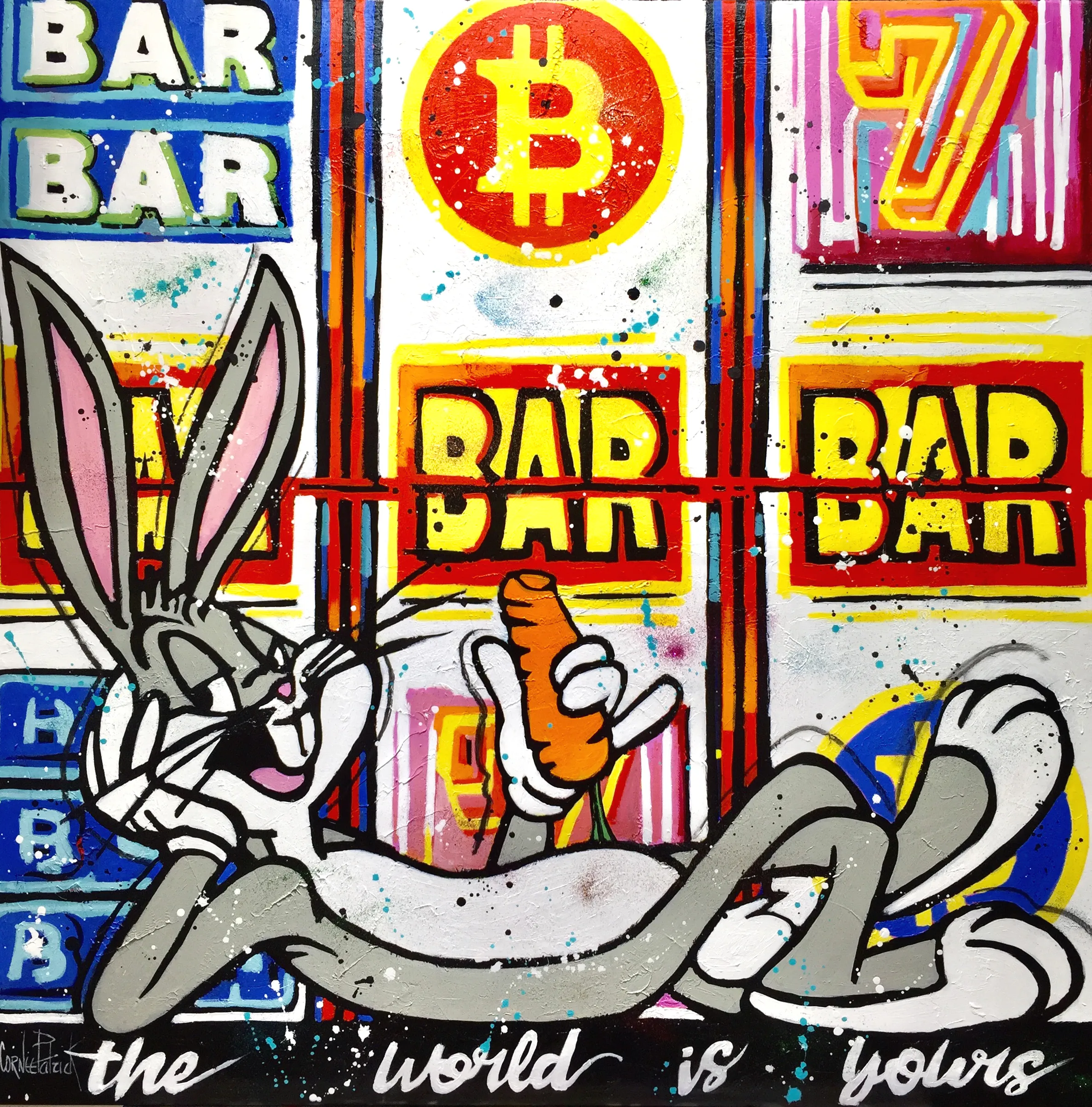 A pop art and street art vision of Bugs Bunny. Unique and original work signed by the painter Patrick Cornée, delivered with invoice and certificate of authenticity. The canvas is varnished for better protection of the work and is ready to be hung on the wall.