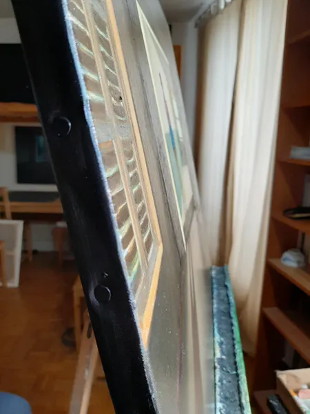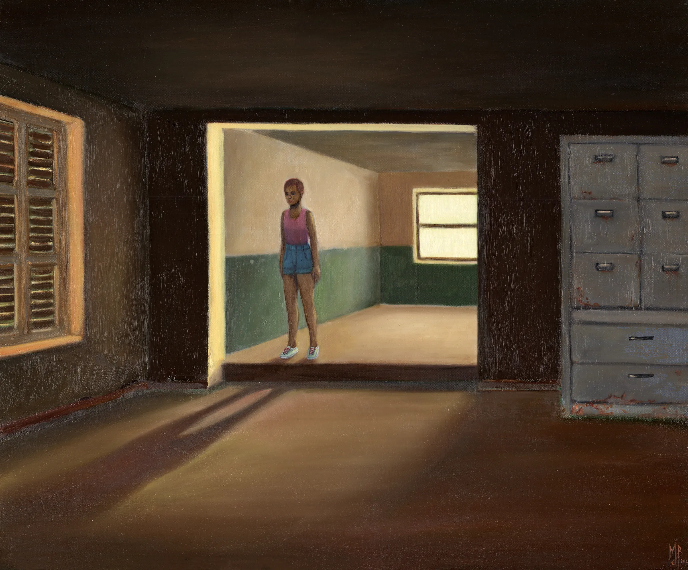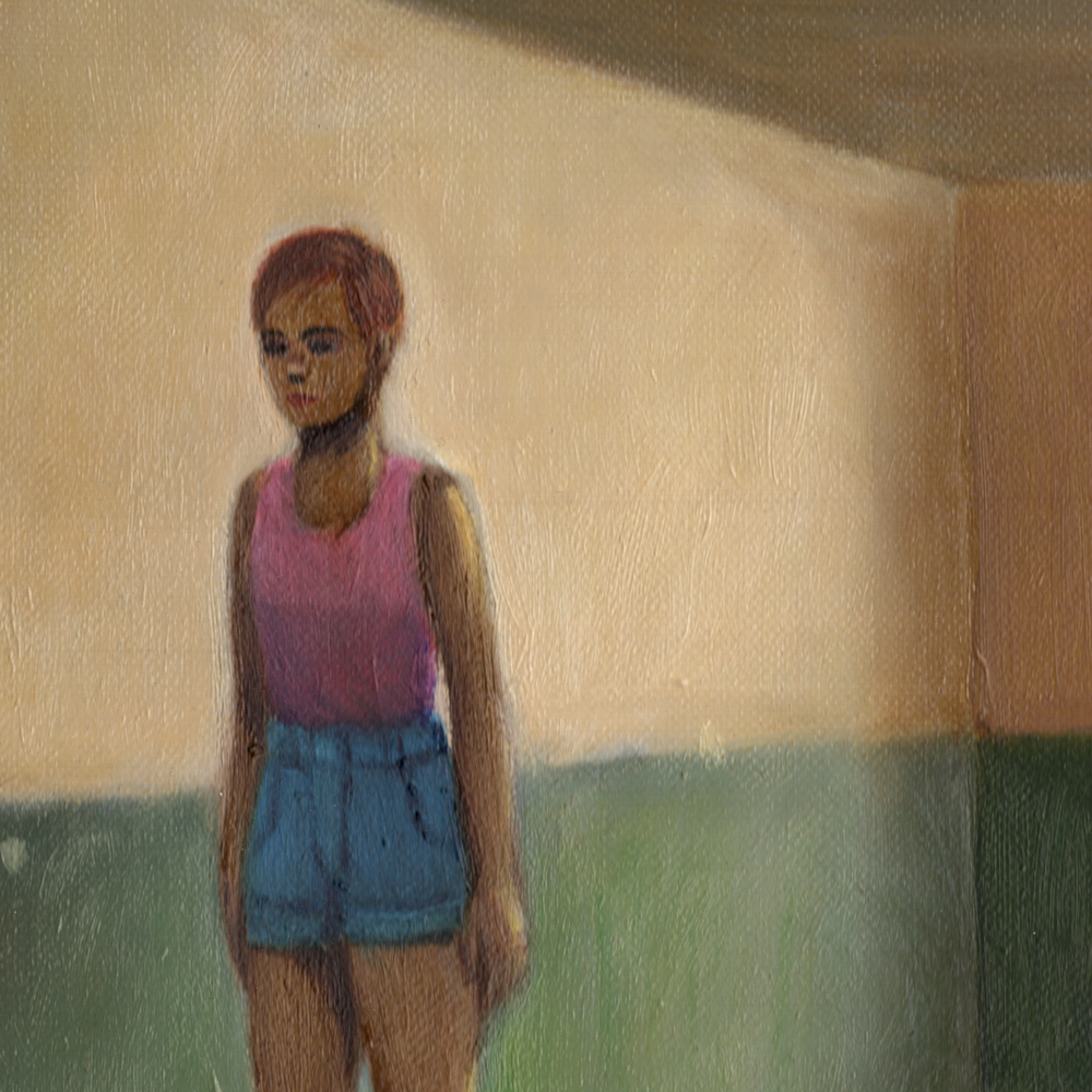 The title accurately describes what I tried to convey in this work, namely a confined space baked by heat. I also played on the contrast between the bright room and the main room, with the character standing at the boundary between the two.