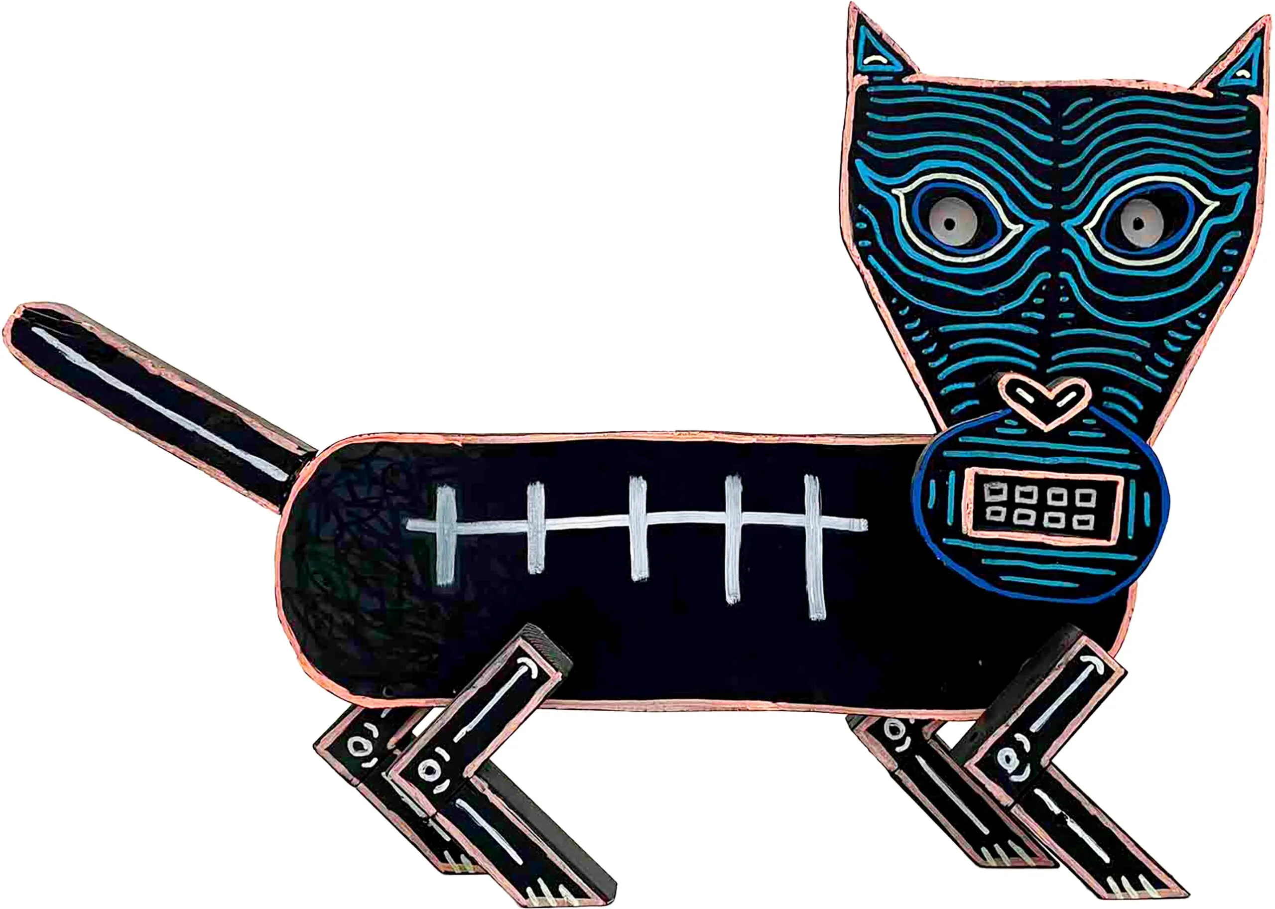 Discarded materials, especially reclaimed wood, form the foundation of his work. Not only for sustainability reasons but also for their raw, lived-in appearance, which adds depth to his compositions. He embraces the imperfections of the material and incorporates them into his expressive visual language, where cartoonish figures, skeletal forms, and animals frequently appear. His work is playful and colorful, yet beneath the cheerful exterior often lies a deeper, sometimes confrontational layer.