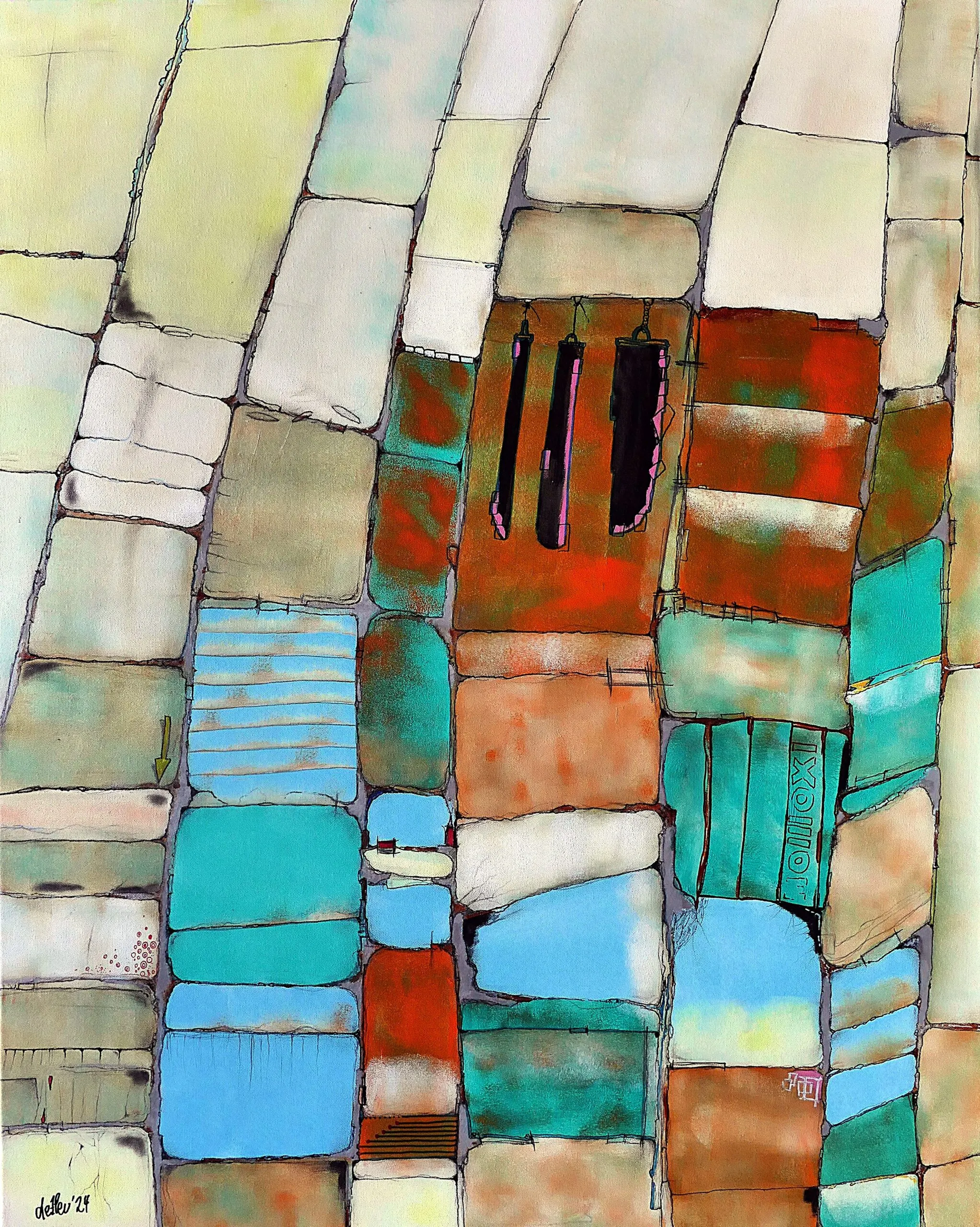 As children, we stacked painted building blocks. We laid them out on the floor in endless variations, moved them, rearranged them, until we found the harmony that made us happy. I recognize that this process recurs in old age. Sold.