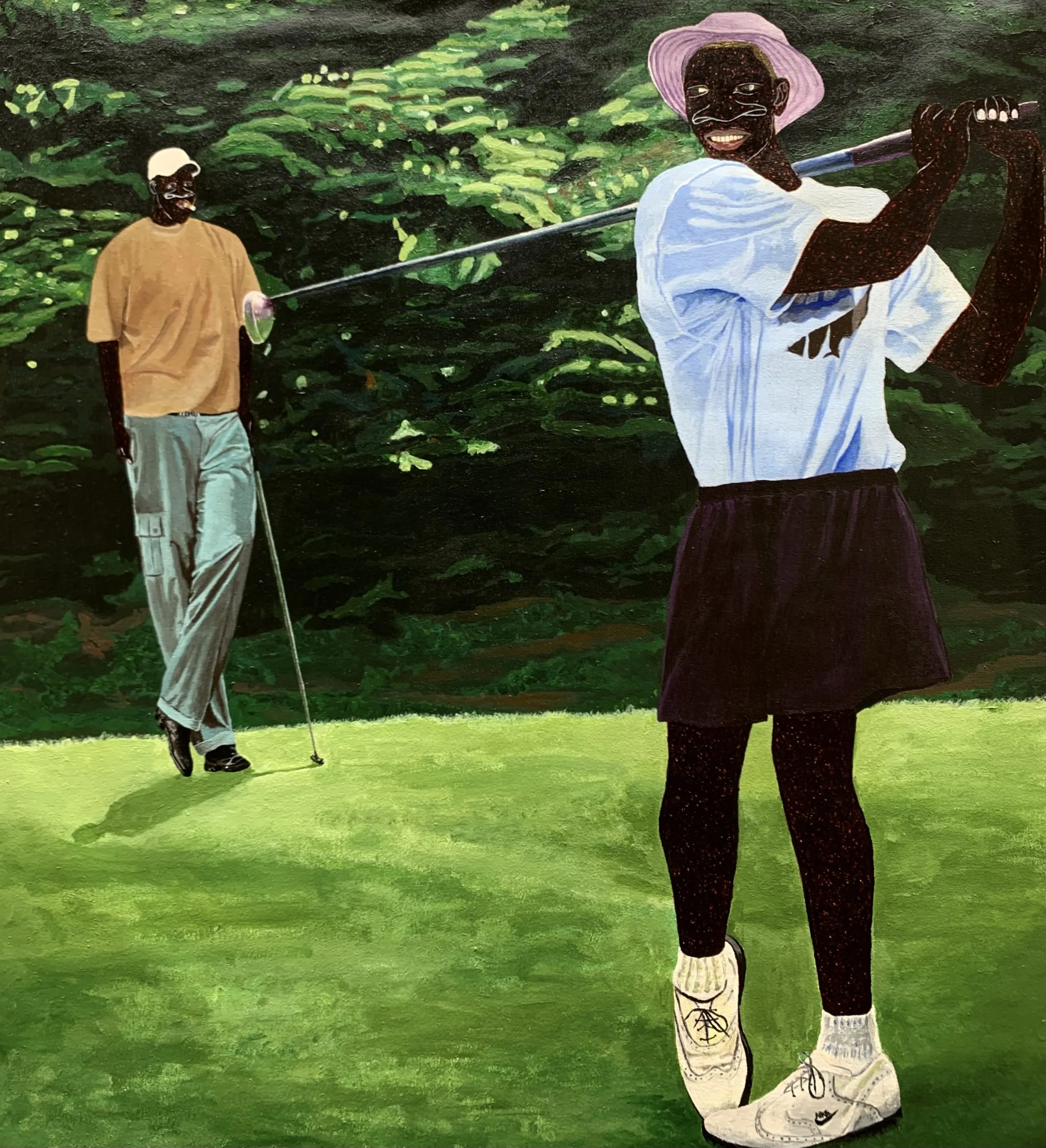 Akintomide Akinshola (b. 1995) is a contemporary visual artist from a lineage of crop farmers in the historic city of Ondo, Ondo State, Nigeria. He currently lives and works in Lagos. From a young age, he showed a deep curiosity for art, experimenting with everyday materials to express his imagination. This early passion guided him toward a degree in Fine and Applied Arts Education at Obafemi Awolowo University, Ile-Ife.Over the years, Akintomide has participated in several group exhibitions both in Nigeria and abroad, steadily building a distinctive visual language. Akintomide’s artistic practice explores identity, culture, and the complexities of human relationships. Through the use of ink and acrylic compositions, he creates figurative pieces that reveal the beauty, fragility, and resilience of human bonds. His exaggerated facial features, especially the nose serve as both personal symbol and narrative device, rooted in childhood experiences of being taunted, yet transformed into marks of strength and individuality.Influenced by his environment, cultural heritage, and personal experiences, Akintomide captures intimate scenes that invite reflection on how relationships shape and transform us. He also brings together African and non-African fabric patterns, reimagining their historical and cultural connections. Through this fusion, his art becomes both a celebration of shared humanity and a visual dialogue on identity, belonging, and the power of connection.