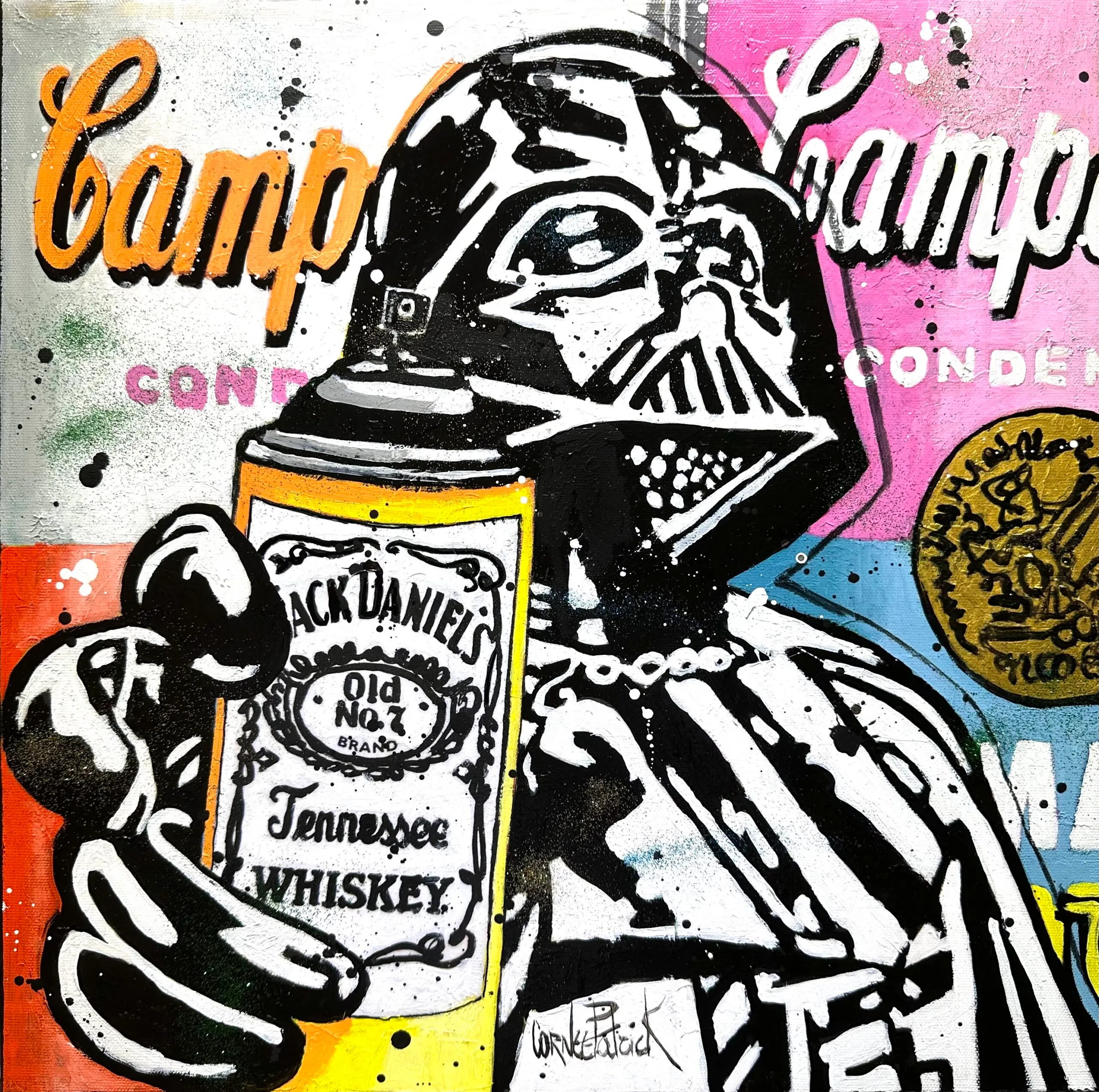 A pop art and street art vision of Darth Vader. Unique and original work signed by the painter Patrick Cornée, delivered with invoice and certificate of authenticity. The canvas is varnished for better protection of the work and is ready to be hung on the wall. I enjoy using and experimenting with all the techniques on canvas, oil, acrylic, knives, brushes, engraving, spray cans, collage, gold leaf, micro-glitter inlay… from small to very large formats.