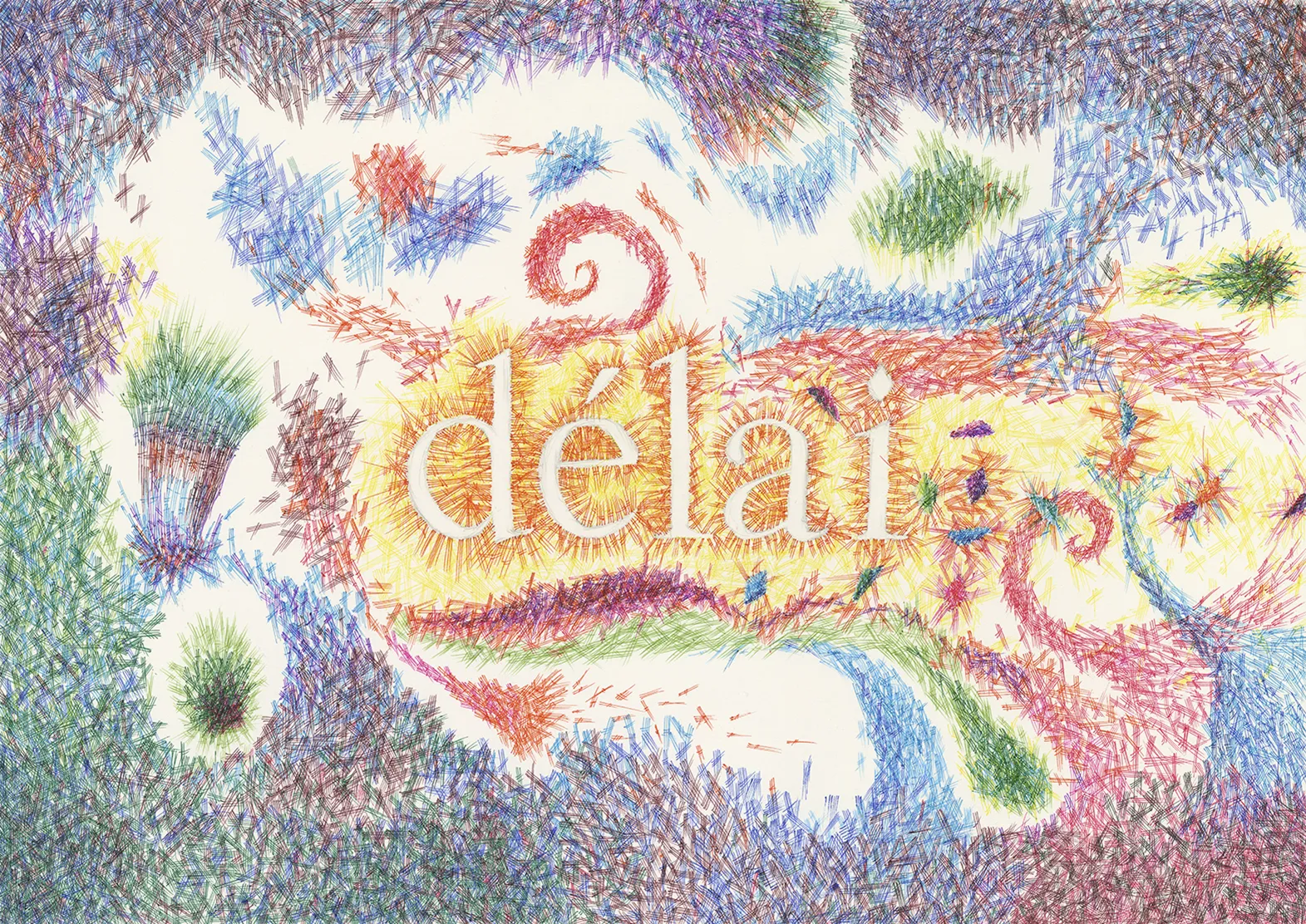 Délai, est un dessin au stylo bille sur papier d'Arches de la série Mots d'Amour & Love Hurts.
