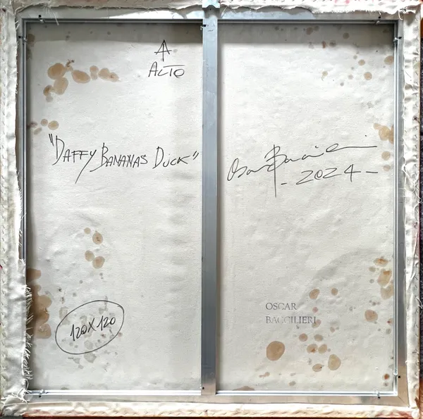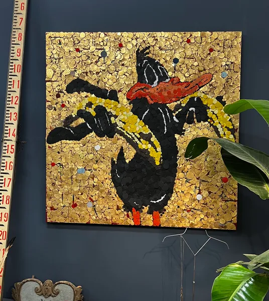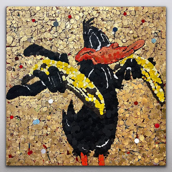Questa opera è un'affascinante fusione di espressionismo e pop art, creata con carta vetrata riciclata dipinta ad acrilico e foglia d'oro un collage su tela. Questo personaggio, fa parte della recente serie dei Lovely Toons, (libera interpretazione dei Looney Tunes) in cui i personaggi più rappresentativi dei cartoons americani, santificati su un fondo dorato,impugnano sempre una banana. Questa volta, il frutto simbolo delle piantagioni dell'America Latina rappresenta lo sfruttamento.