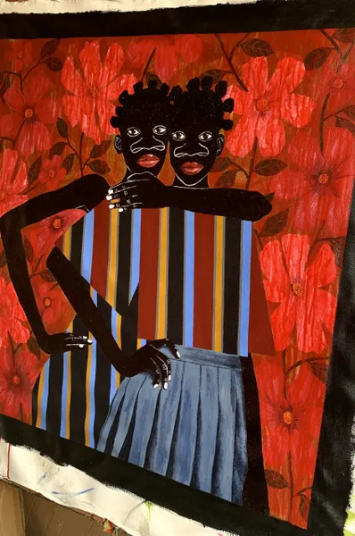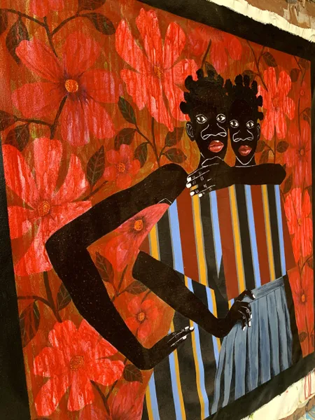 Akintomide Akinshola (b. 1995) is a contemporary visual artist from a lineage of crop farmers in the historic city of Ondo, Ondo State, Nigeria. He currently lives and works in Lagos. From a young age, he showed a deep curiosity for art, experimenting with everyday materials to express his imagination. This early passion guided him toward a degree in Fine and Applied Arts Education at Obafemi Awolowo University, Ile-Ife.Over the years, Akintomide has participated in several group exhibitions both in Nigeria and abroad, steadily building a distinctive visual language. Akintomide’s artistic practice explores identity, culture, and the complexities of human relationships. Through the use of ink and acrylic compositions, he creates figurative pieces that reveal the beauty, fragility, and resilience of human bonds. His exaggerated facial features, especially the nose serve as both personal symbol and narrative device, rooted in childhood experiences of being taunted, yet transformed into marks of strength and individuality.Influenced by his environment, cultural heritage, and personal experiences, Akintomide captures intimate scenes that invite reflection on how relationships shape and transform us. He also brings together African and non-African fabric patterns, reimagining their historical and cultural connections. Through this fusion, his art becomes both a celebration of shared humanity and a visual dialogue on identity, belonging, and the power of connection.