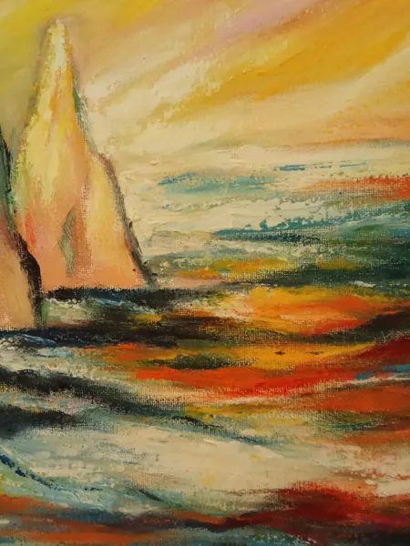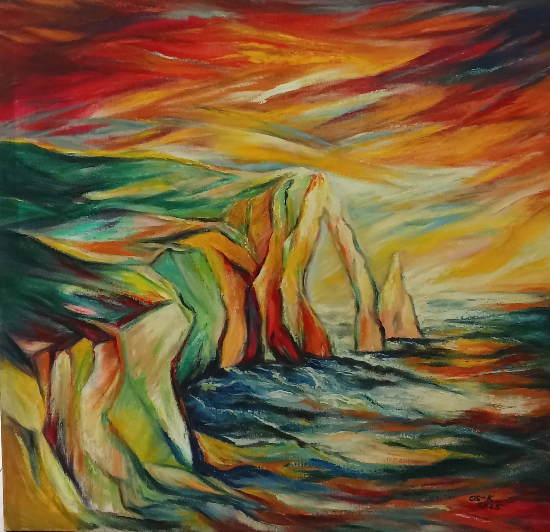 Born in Chomutov, in West Bohemia (then Czechoslovakia), Olga Schrüfer-Kozlova grew up in Karlovy Vary, where she completed her baccalaureate and studied languages and tourism economics, alongside fine arts under Professor Ludva. After leaving Czechoslovakia during the Prague Spring in 1968, she settled in Germany and continued her painting studies with Professor Hinsch in Göttingen. From 1979 onward, she exhibited internationally in Germany, France, Monaco, Switzerland, the Czech Republic, the United States, and Canada. Her works are held in numerous private and public collections worldwide. Now living and working near Étretat, on the coast of Normandy, in France, she devotes her practice to landscapes suffused with light. Echoing Goethe’s words, “Colors are the deeds and sufferings of light,” her paintings reveal a profound, luminous depth.