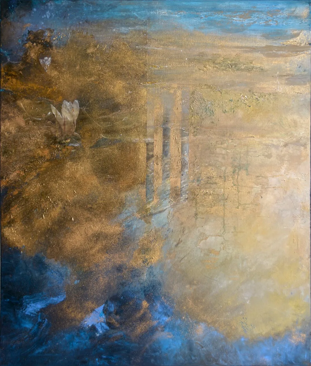 Murielle Argoud, an artist with French and Andalusian roots, comes from Lyon, where she began painting at a young age. Trained across Europe in the 1970s and 1980s—from France and Germany to Switzerland and Tuscany—she chose to step away from theory and draw her inspiration directly from nature. Her works blend oil and acrylic with materials such as lava, sand, gold leaf, and collage, creating powerful, textured compositions where natural forces—winds, snow, waterfalls, and glowing night skies—meet a vibrant, mystical light. Known for combining dramatic surfaces with a soft, poetic atmosphere, she has exhibited in over 50 solo shows and international art fairs, including New York and Venice. Her works are held in private and public collections, and even in a chapel in Geneva. Constantly seeking new horizons, she feels at home wherever art and inspiration meet.