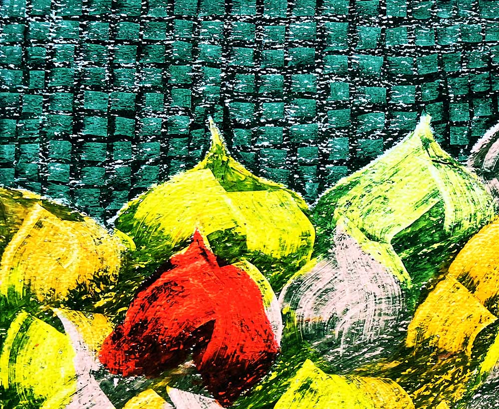 The vibrant explosion of shapes, color, and textures leads to a dynamic visual rhythm. Vigor draws us to energetic and lively qualities, creating sensations of movement and continuity.