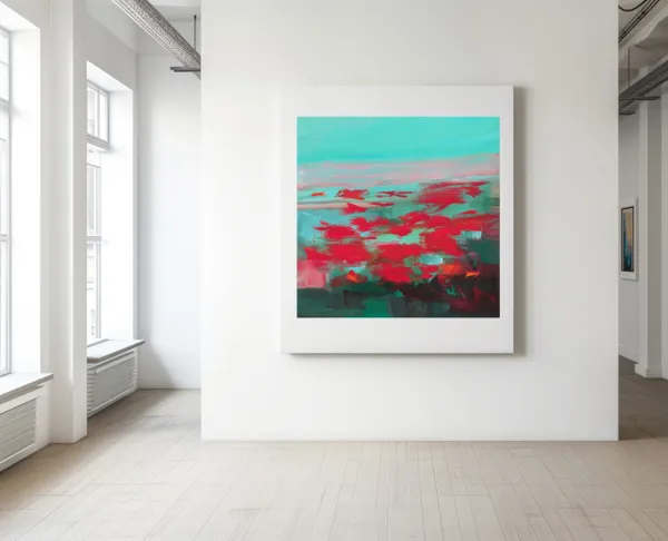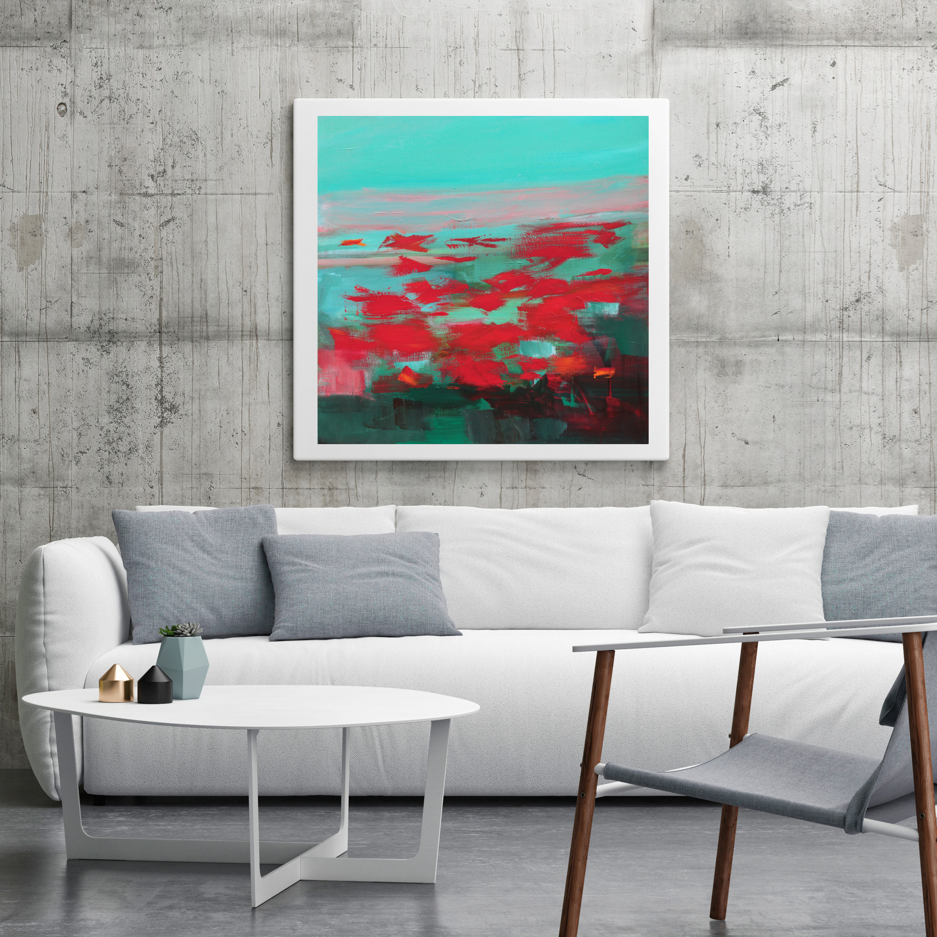 "Fields of Red" is an original abstract painting, a vibrant homage to the unforgettable sight of summer poppies blooming across the Northern landscape. The expressionistic style captures the essence of a poppy field in a dance of color and form. Created with highly pigmented acrylics on canvas, this medium-sized artwork boasts a rich depth of color and texture. The sides of the canvas are painted, offering a clean, contemporary look.The artwork will be shipped to you in a crate.