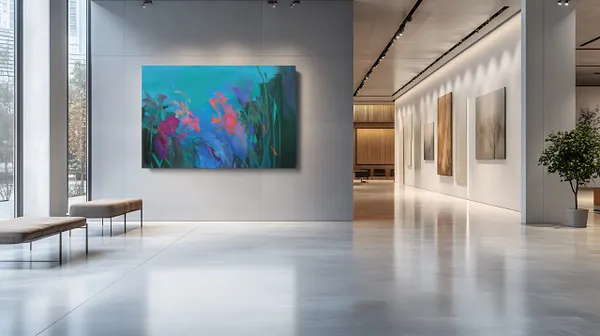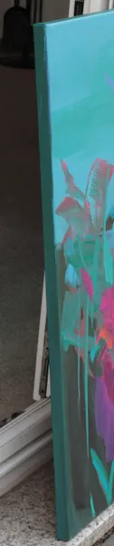 "Flow II" is an original abstract painting, inspired by the beauty of the northern landscape. This large acrylic on canvas artwork captures the essence of spring with its vibrant blend of blue, purple, and green hues. The gestural technique and the highly pigmented colors create a captivating floral landscape, reminiscent of a lush garden in full bloom. The artwork will be shipped to you in a crate, ensuring its safe arrival.