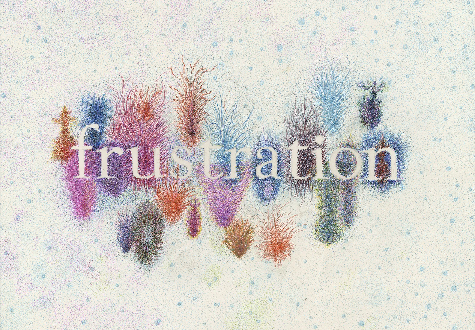 Frustration, est un dessin au stylo bille sur papier d'Arches de la série Mots d'Amour & Love Hurts.