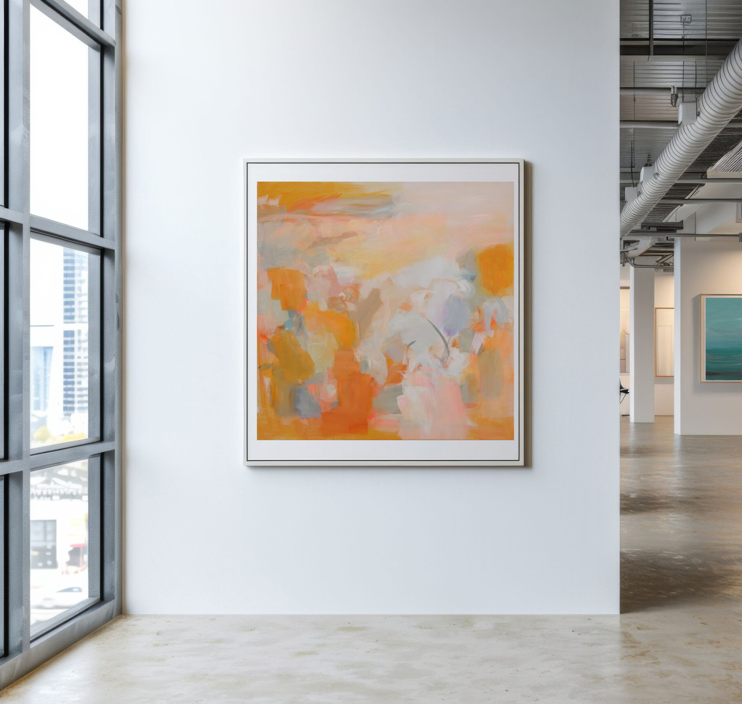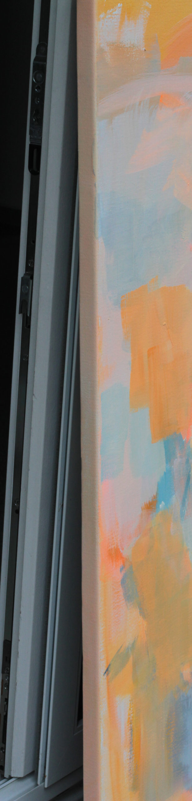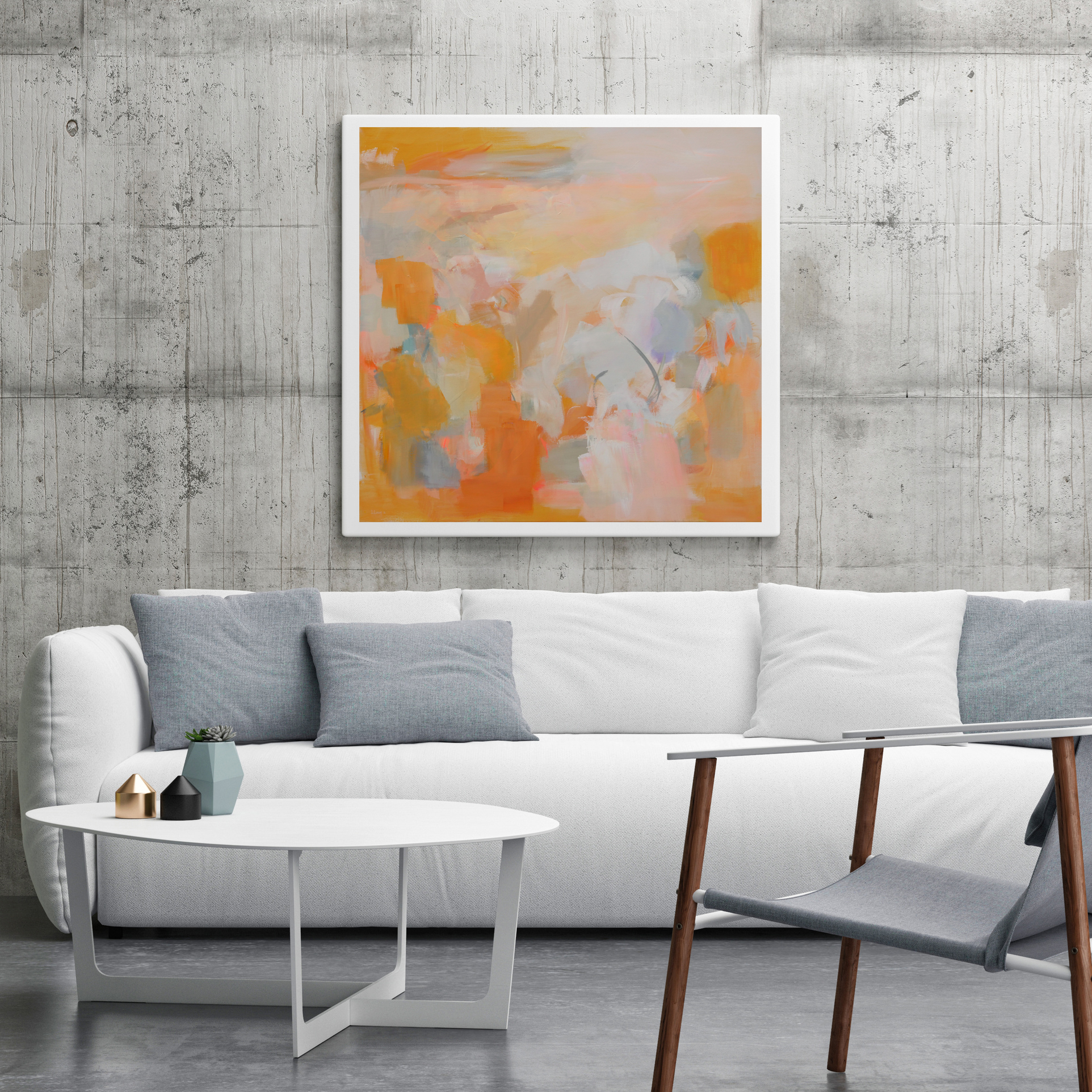 "Here Comes the Sun II" is an original, large abstract painting that captures the unique essence of light. I was particularly inspired by the vibrant energy of spring. The artwork is an expressionistic dance of yellows and oranges. The painting is varnished with a matte finish that includes UV protection, ensuring the longevity and vibrancy of the colors. The sides are painted as well, and no frame is required. The artwork will be shipped in a crate to ensure its safe arrival.