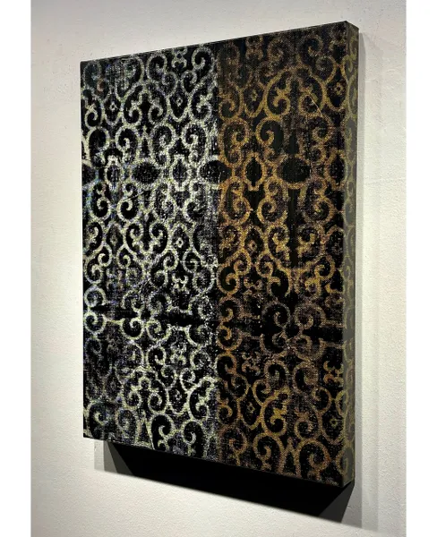 Acrylic on linen stretched on aluminum frame, no warping, ready to hang