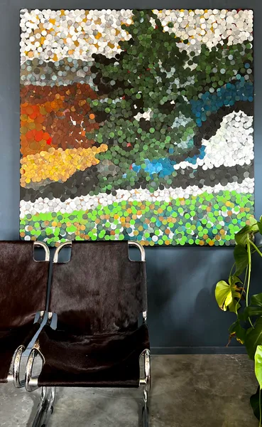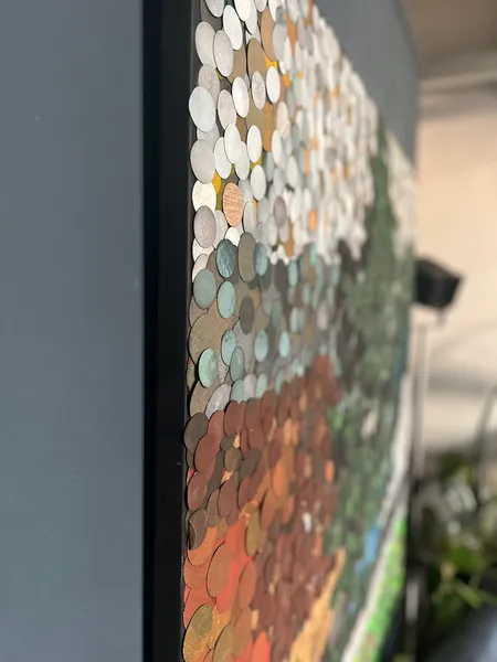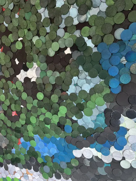 Qui i bollini di carta vetrata assumeono una valenza percettiva nella costruzione dell’immagine, ora ispirata ai Maestri del ‘900, come i Puntinisti, in un tentativo di fondere i generi (figurativo e astratto), ora ispirata alla natura, prendendo come riferimento la memoria del paesaggio stesso.