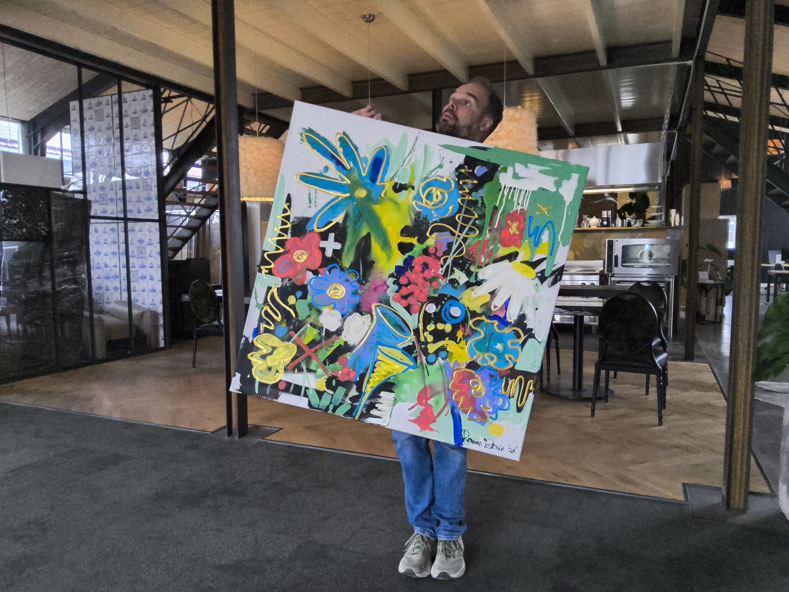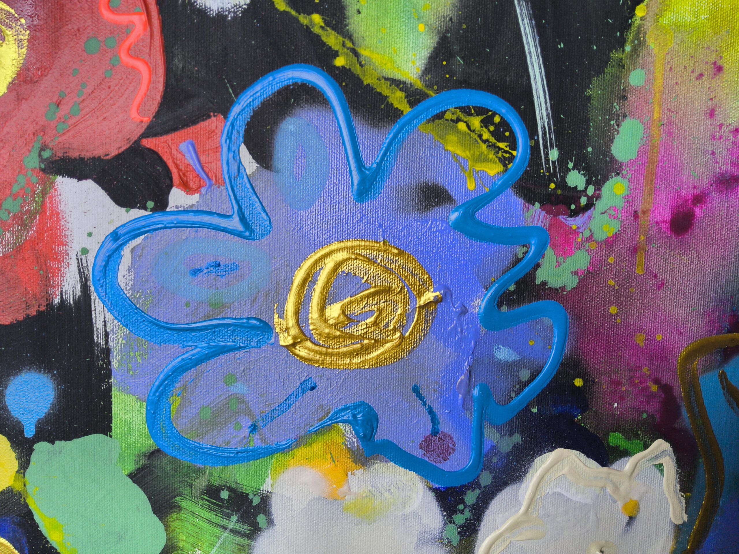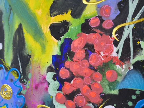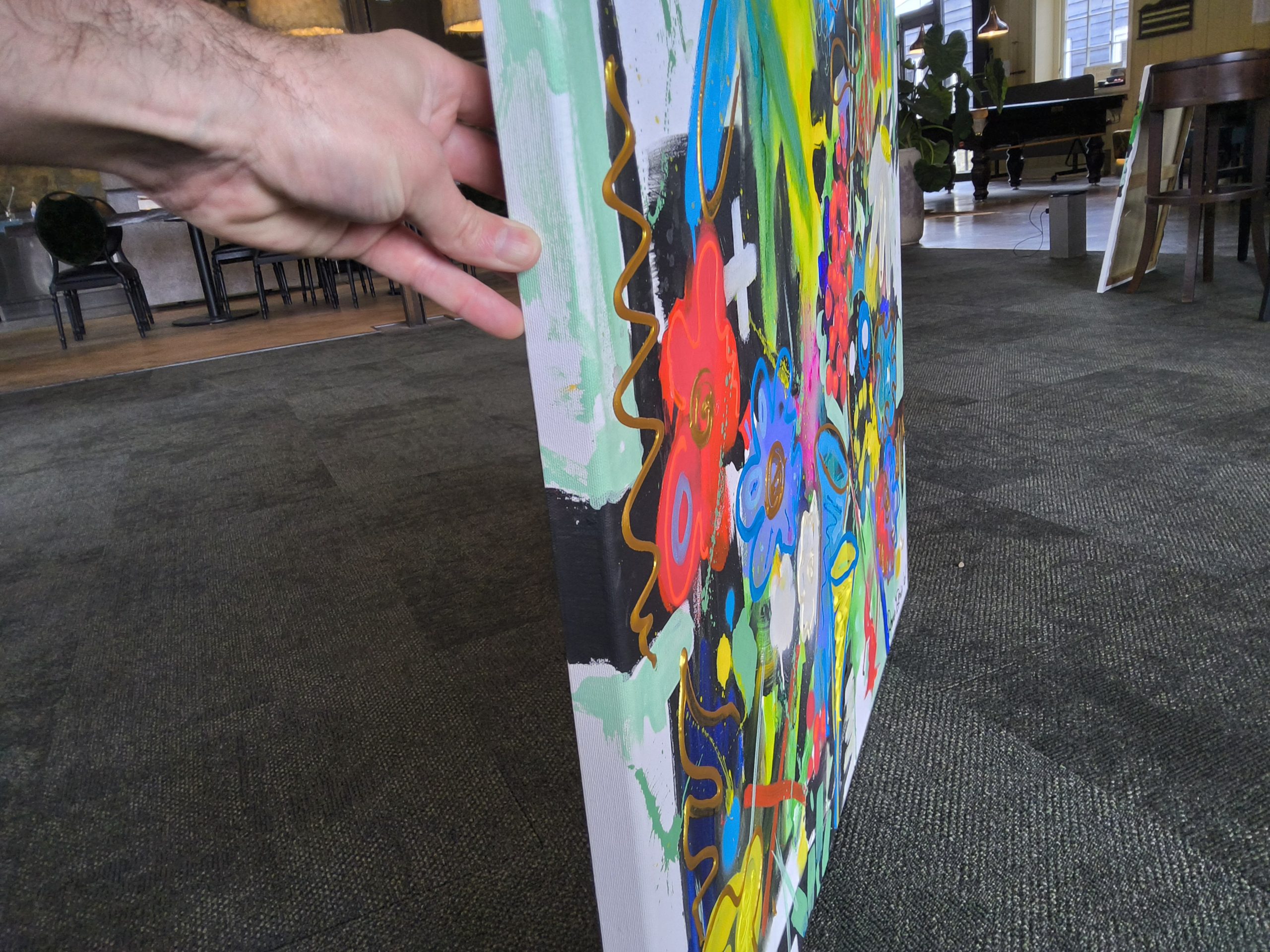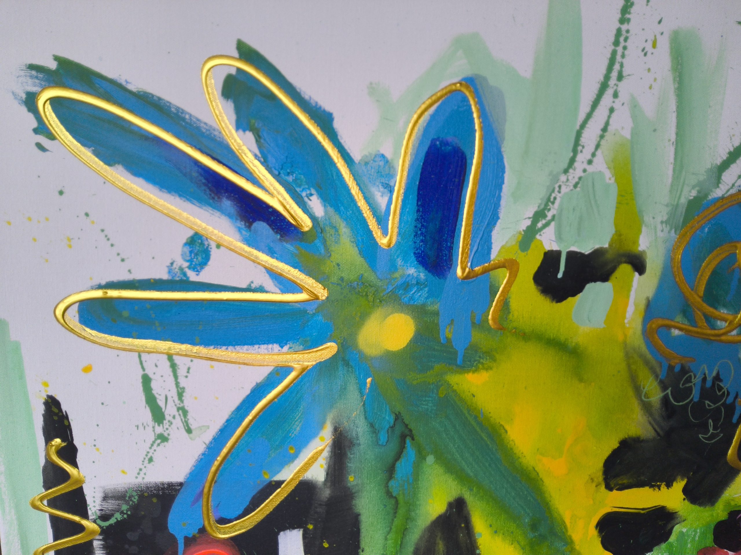 A beautiful arrangement of semi-abstract flowers with vibrant colors. Into The Wild has a lot of energy.
