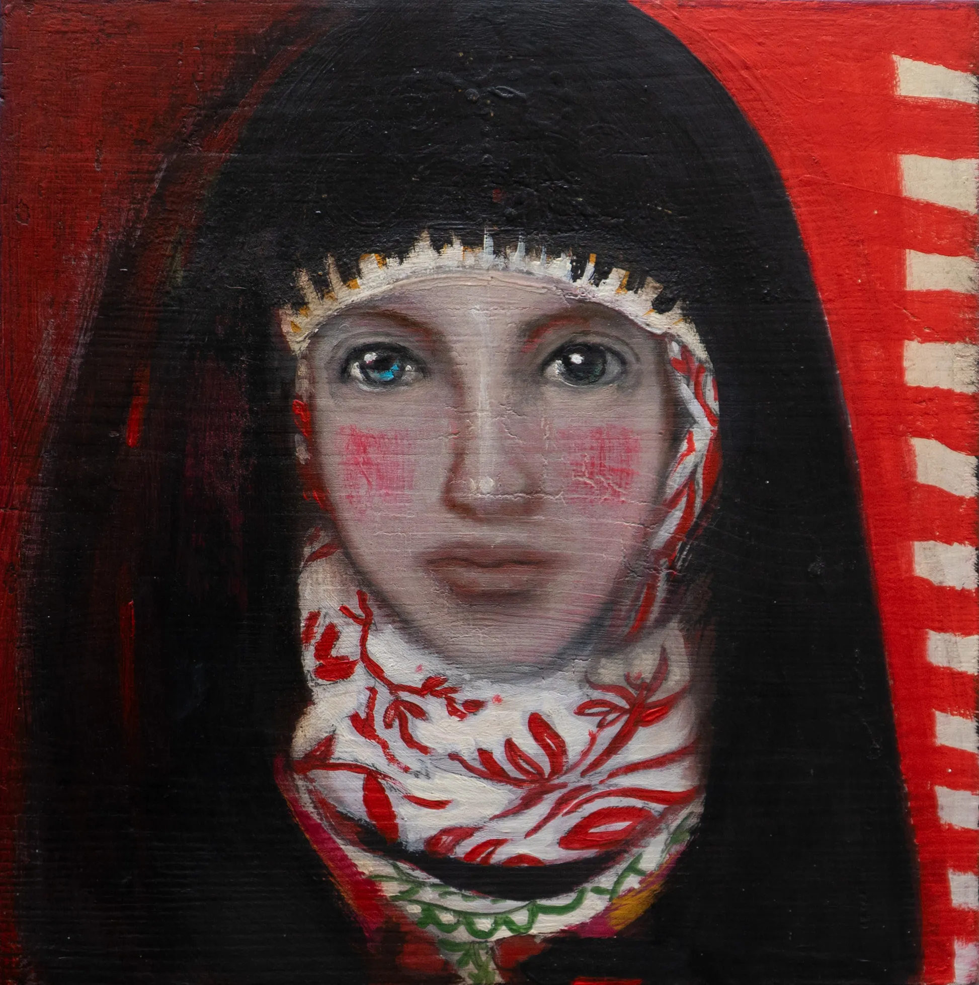 Questo dipinto fa parte della serie "Kaucaso". Le opere, realizzate su tavole in legno preparate a mano, indagano sulla psicologia dei personaggi, che si immaginano vagare in luoghi dove le più disparate etnie si incontrano.