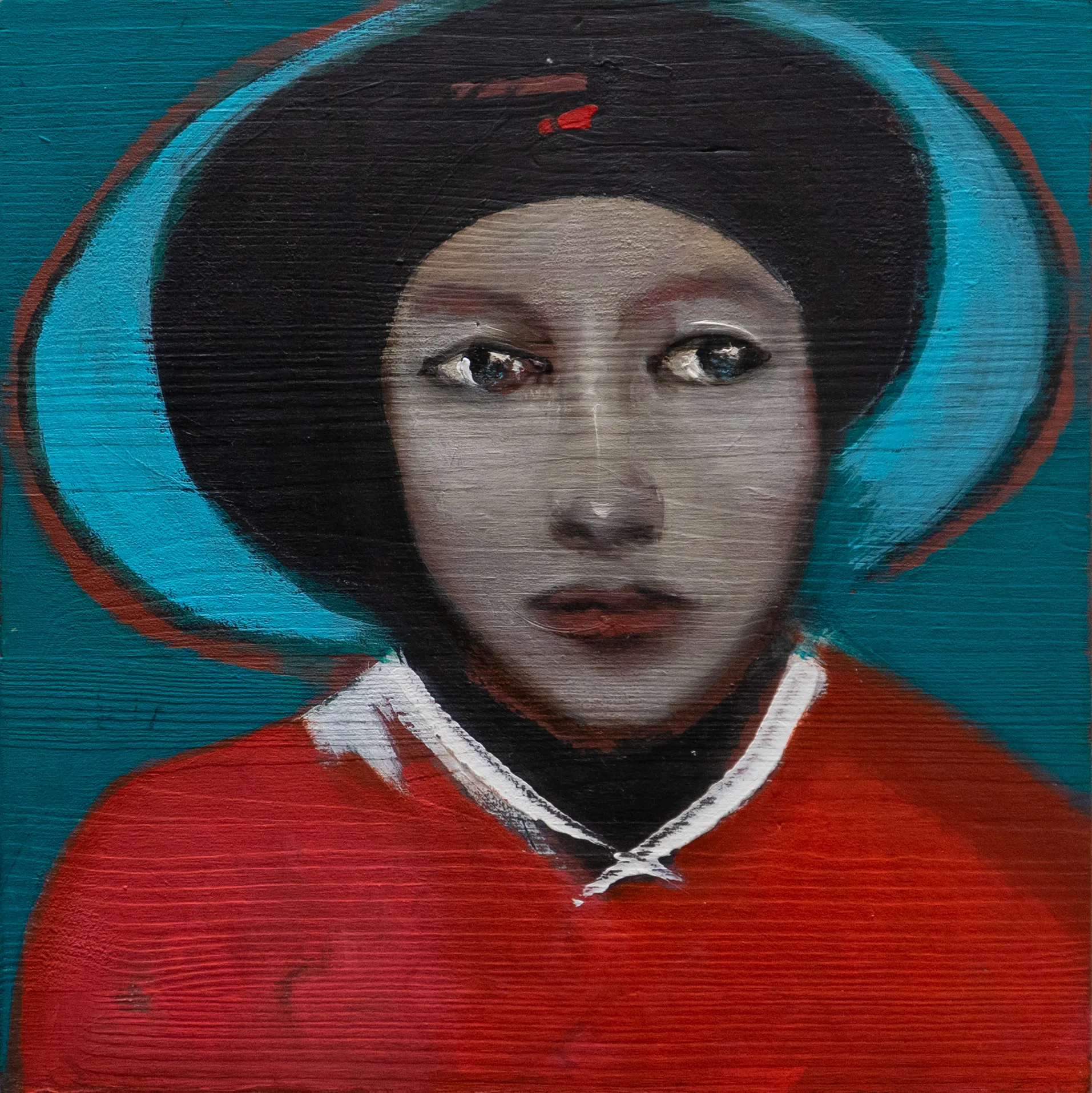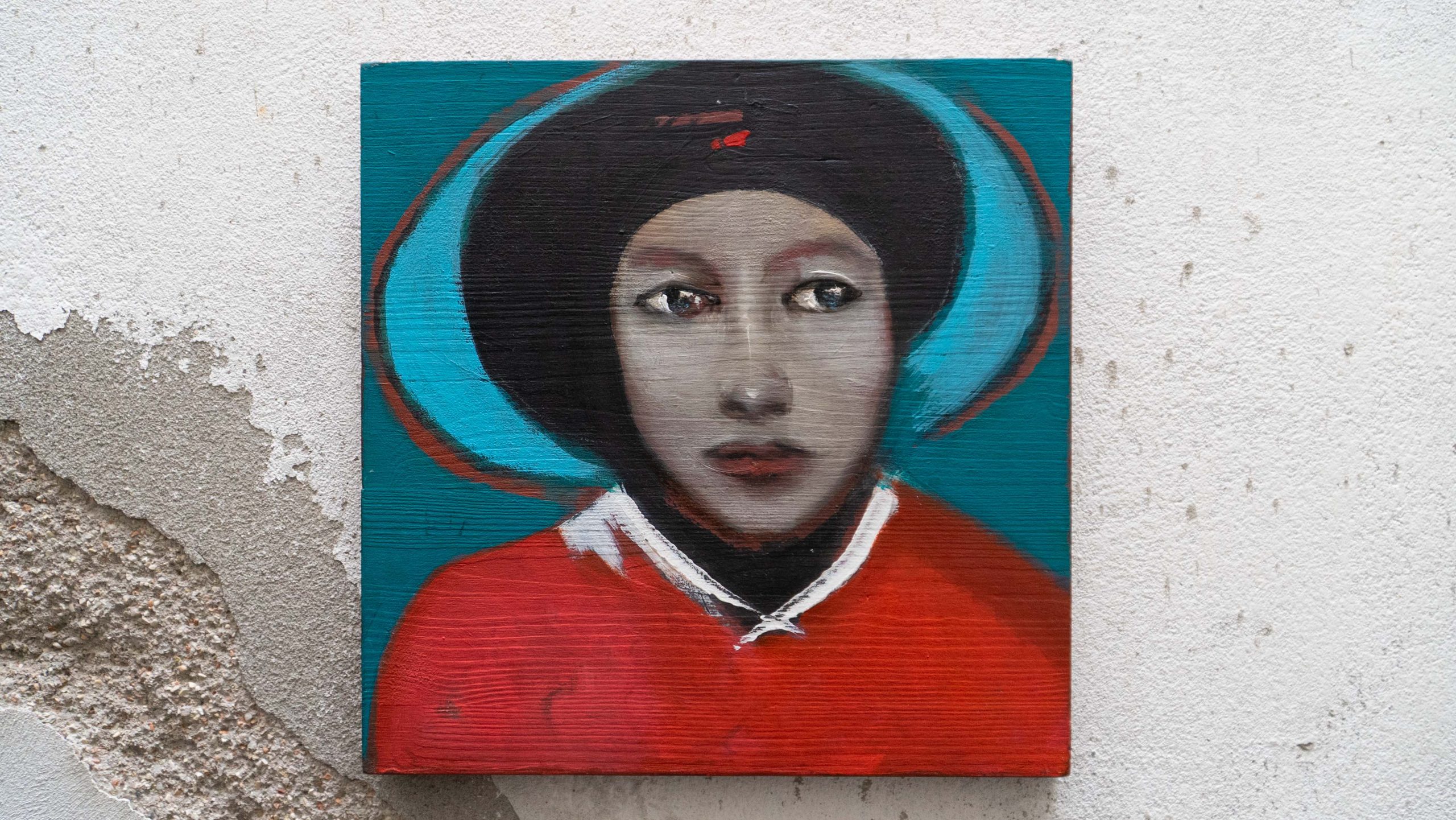 Questo dipinto fa parte della serie "Kaucaso". Le opere, realizzate su tavole in legno preparate a mano, indagano sulla psicologia dei personaggi, che si immaginano vagare in luoghi dove le più disparate etnie si incontrano.
