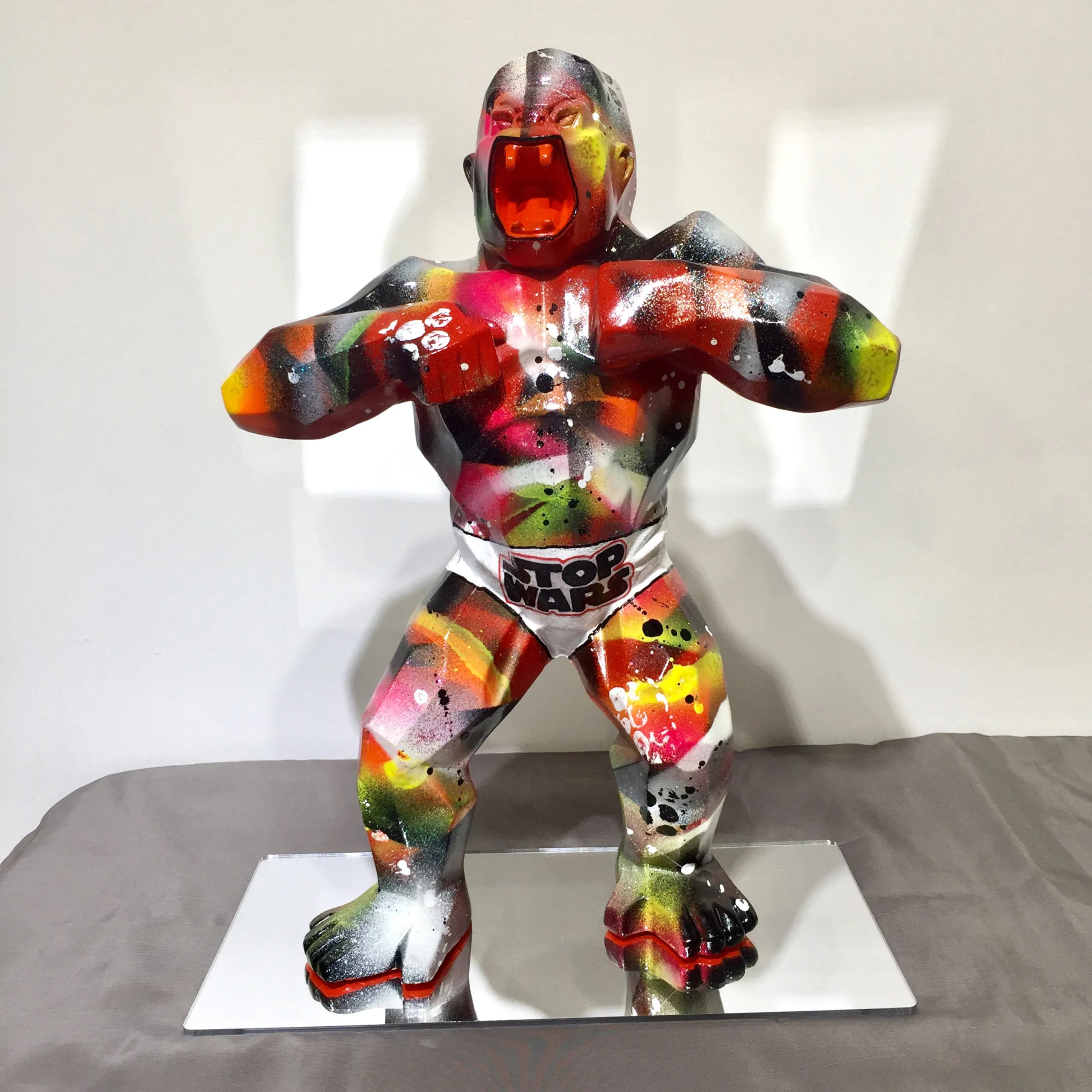Wild Gorilla in briefs, pure street art graffiti, Gorilla, wild King Kong. Unique and original artwork signed by the painter Patrick Cornée, delivered with invoice and certificate of authenticity. The sculpture is varnished for a better protection of the work. My influences are multiple and innumerable, because every day, my imagination is enriched by all the images that I visualize, in magazines, media, television... I am sensitive to the work of Andy Warhol and Banksy...