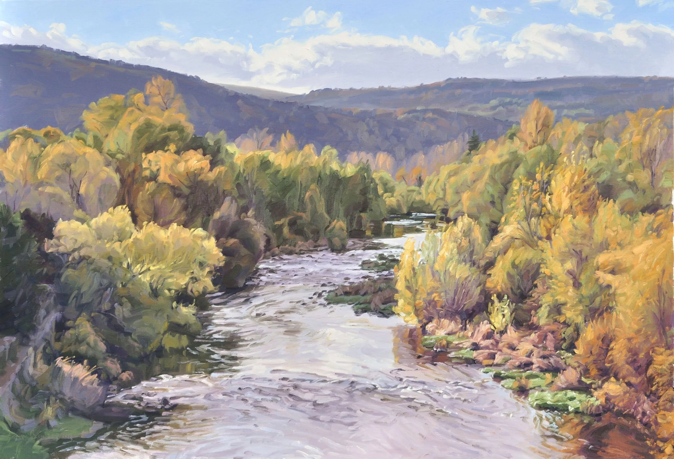 Before becoming the majestic river lined with France's most beautiful castles, near its source, the Loire is a river that carves its path through volcanic mountains, forming wild gorges. This is where I live, and I love to paint it through the changing seasons and light.