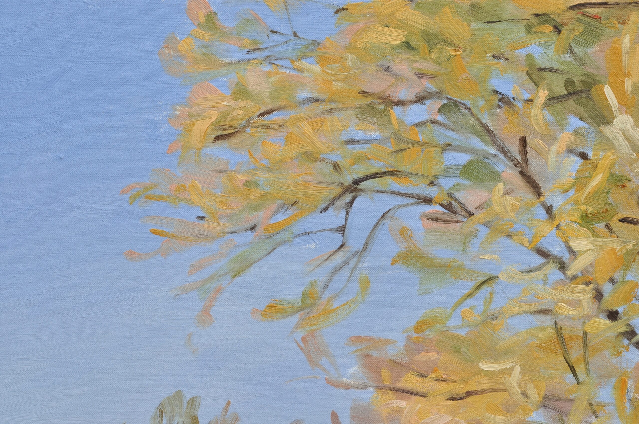 That morning, a soft autumn light was gilding the treetops, imposing its palette: brilliant yellows, warm ochres.