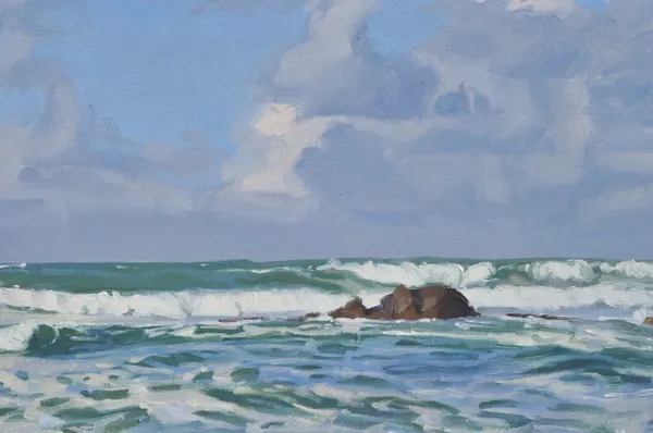 In this oil painting, I sought to capture the invigorating and intrepid essence of the ocean and translate the natural light and changing atmosphere of the coastline.