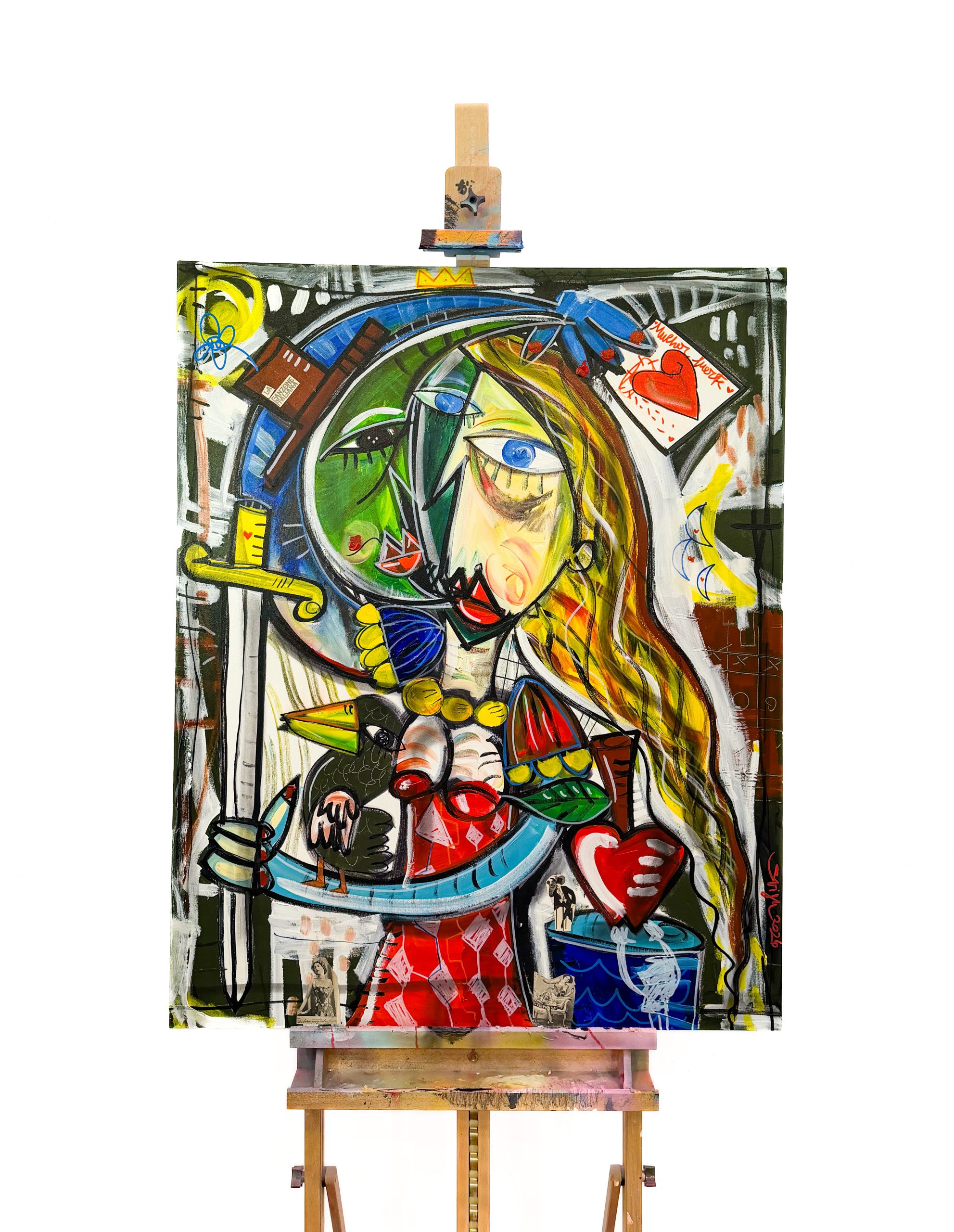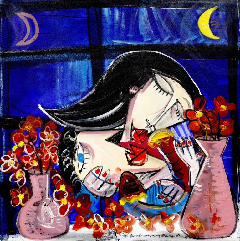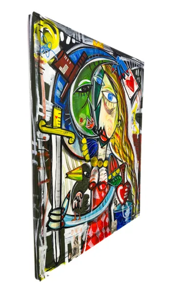 His style can be described as a form of contemporary cubism, drawing inspiration from masters like Picasso and Basquiat, yet maintaining a distinctly personal and unmistakable visual language. Siviglia explores a wide range of themes — love, conflict, female portraits, surreal and intricate compositions, as well as still lifes and religious subjects. His body of work is vast, featuring paintings in many different formats, shapes, and dimensions.