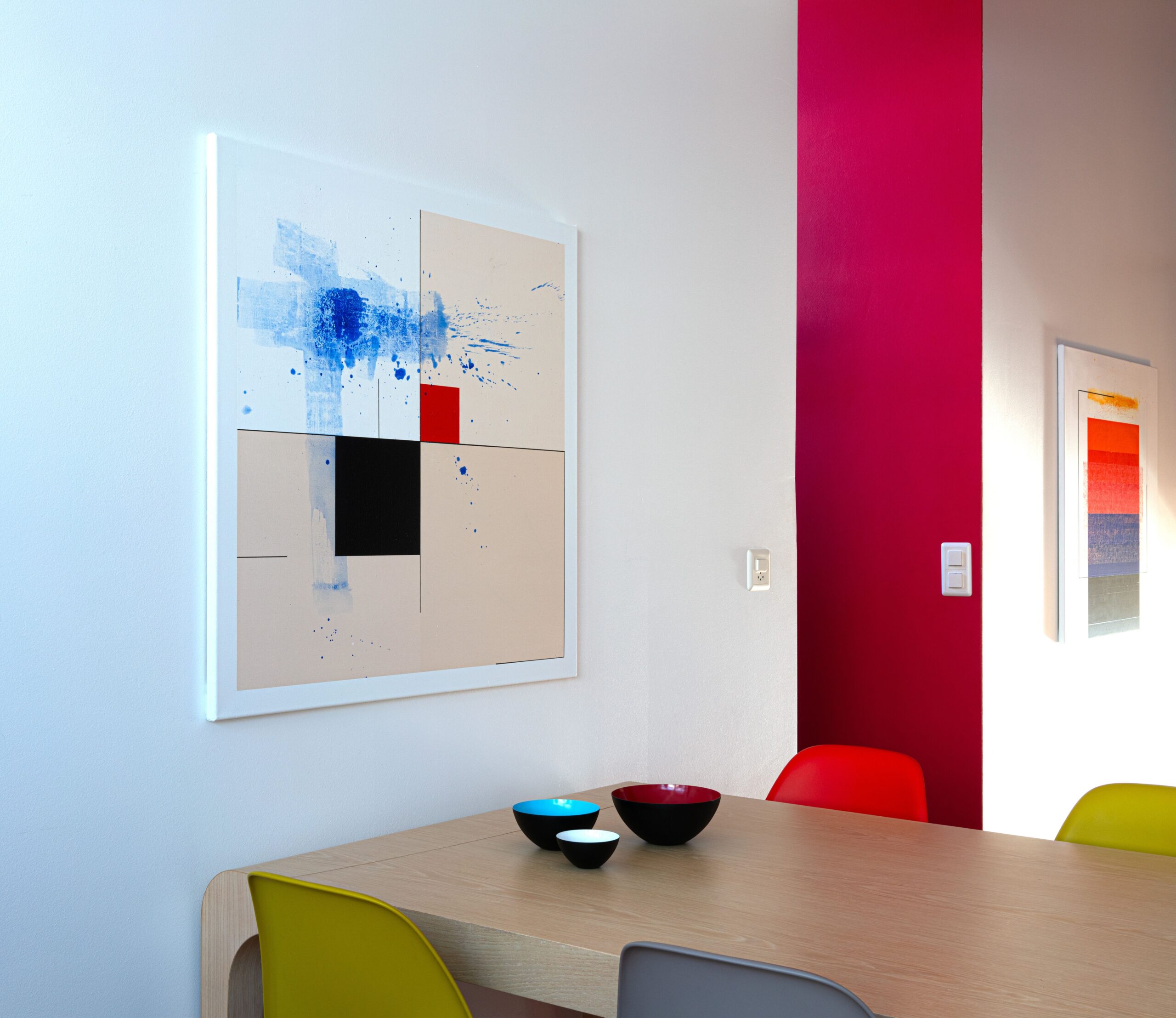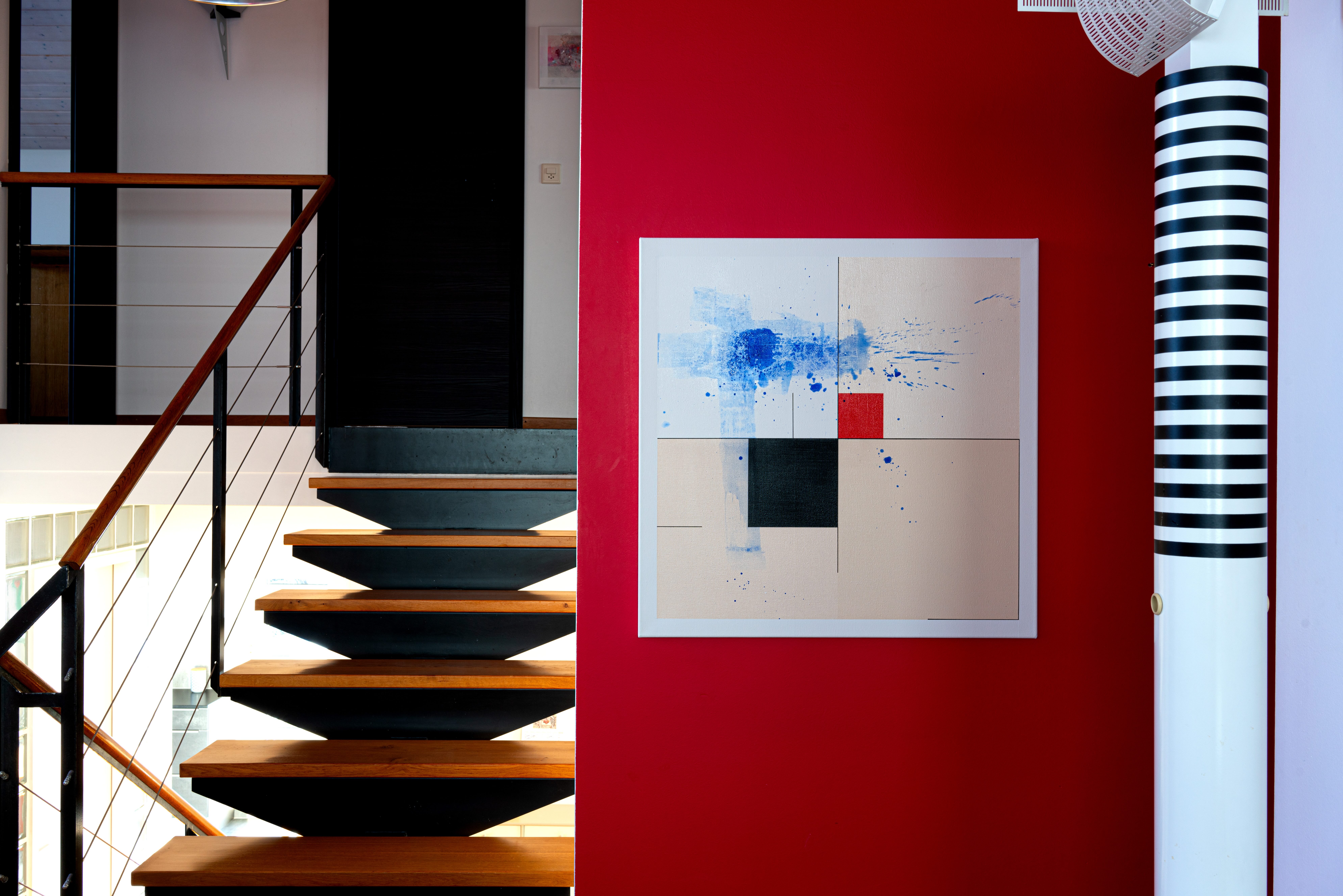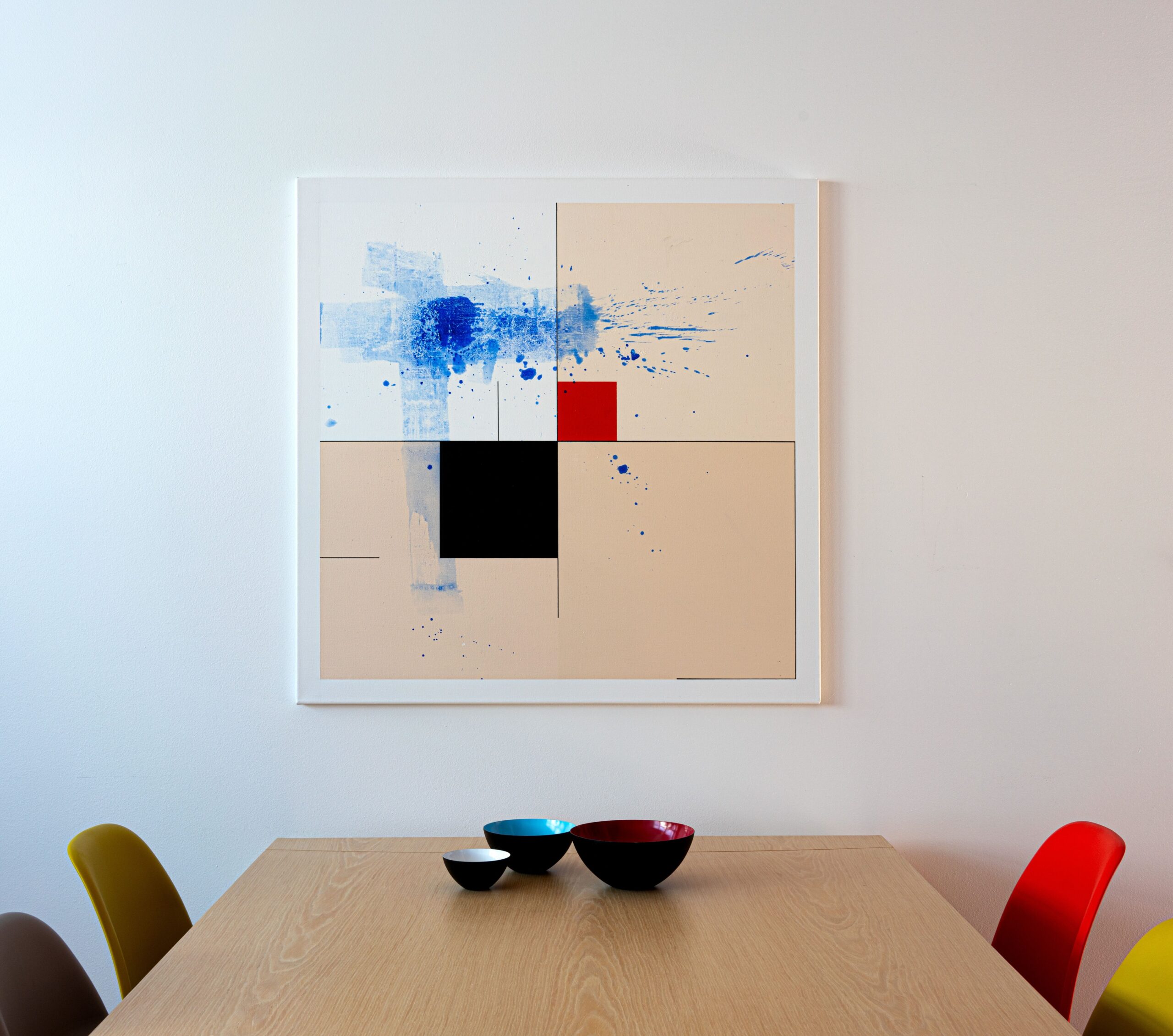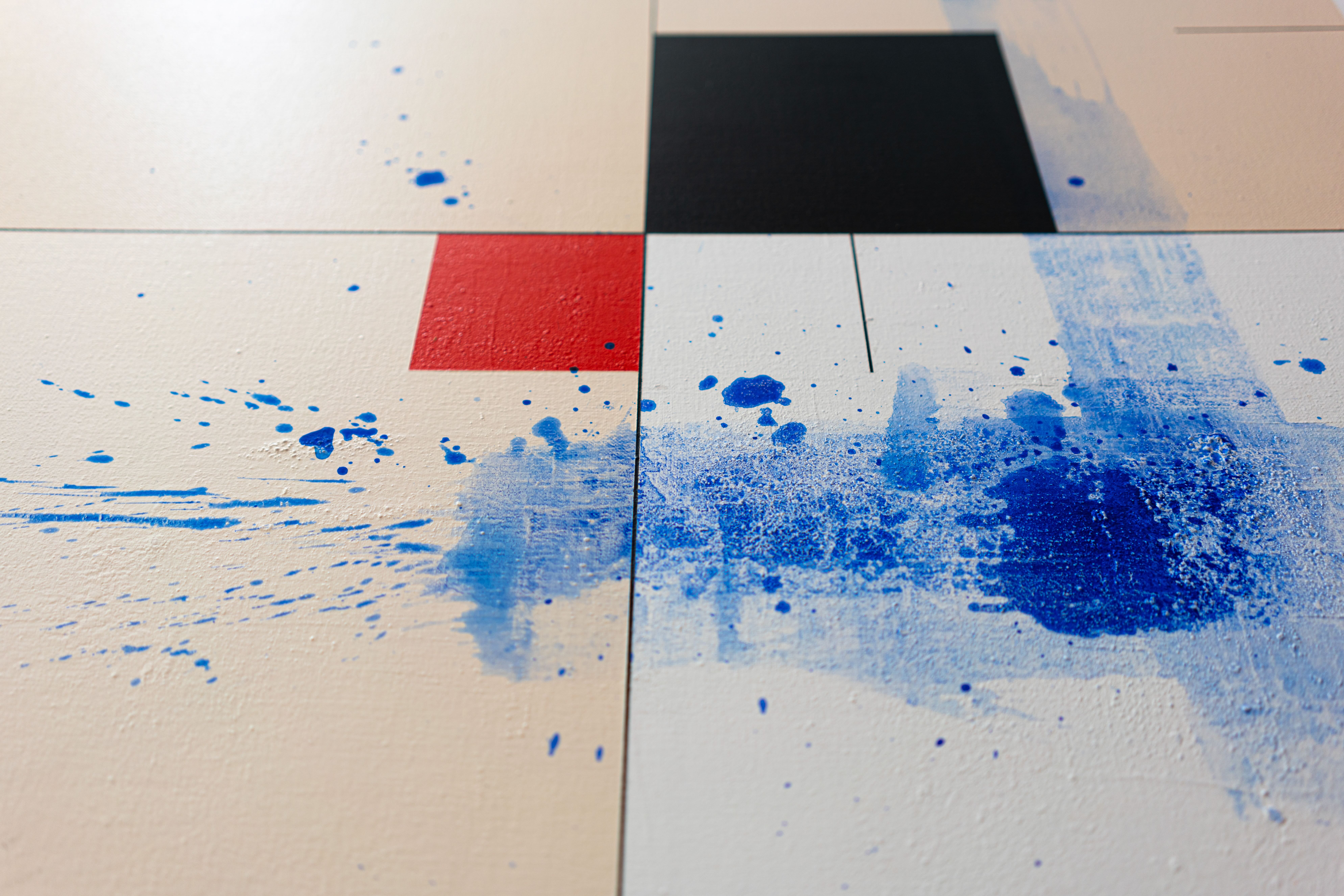 In this work, I sought to merge order and chaos. The use of acrylics and pigments allowed me to create clean geometric shapes and dynamic splashes. My intention was to evoke a sense of structured freedom. The bright colors and minimalist abstraction invite contemplation and bring vibrant energy to any living space. It is a visual dialogue where each viewer can find their own resonance.