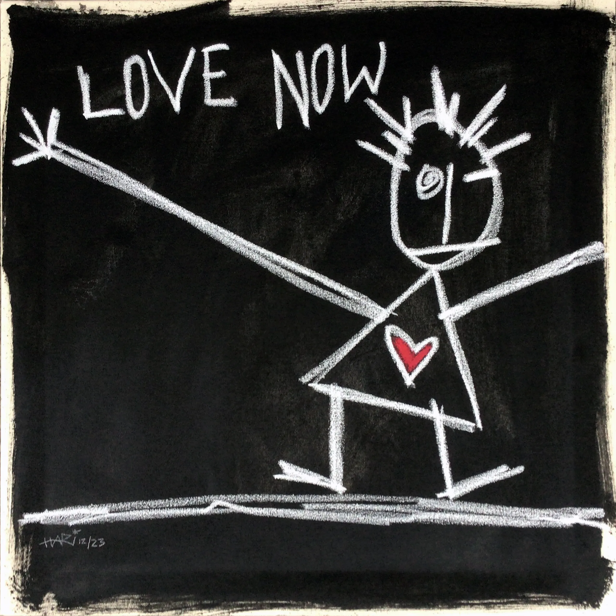 In diesem Werk verschmelzen Öl und Kreide zu einer energetischen, lebendigen Komposition. Geleitet von Art Brut und Kubismus, kreierte ich ein Werk, das poppige Prägnanz mit geometrischen Formen verbindet und die Unmittelbarkeit des Primitivismus einfängt. Dieses Bild ist ein Aufruf zur Liebe – hier und jetzt. Es soll in jedem Raum eine dynamische, ausgelassene Stimmung verbreiten und gleichzeitig die Betrachtenden dazu anregen, im Moment zu leben und Liebe zu verbreiten. Das Bild ist gemalt auf
