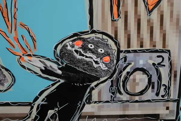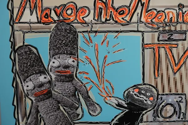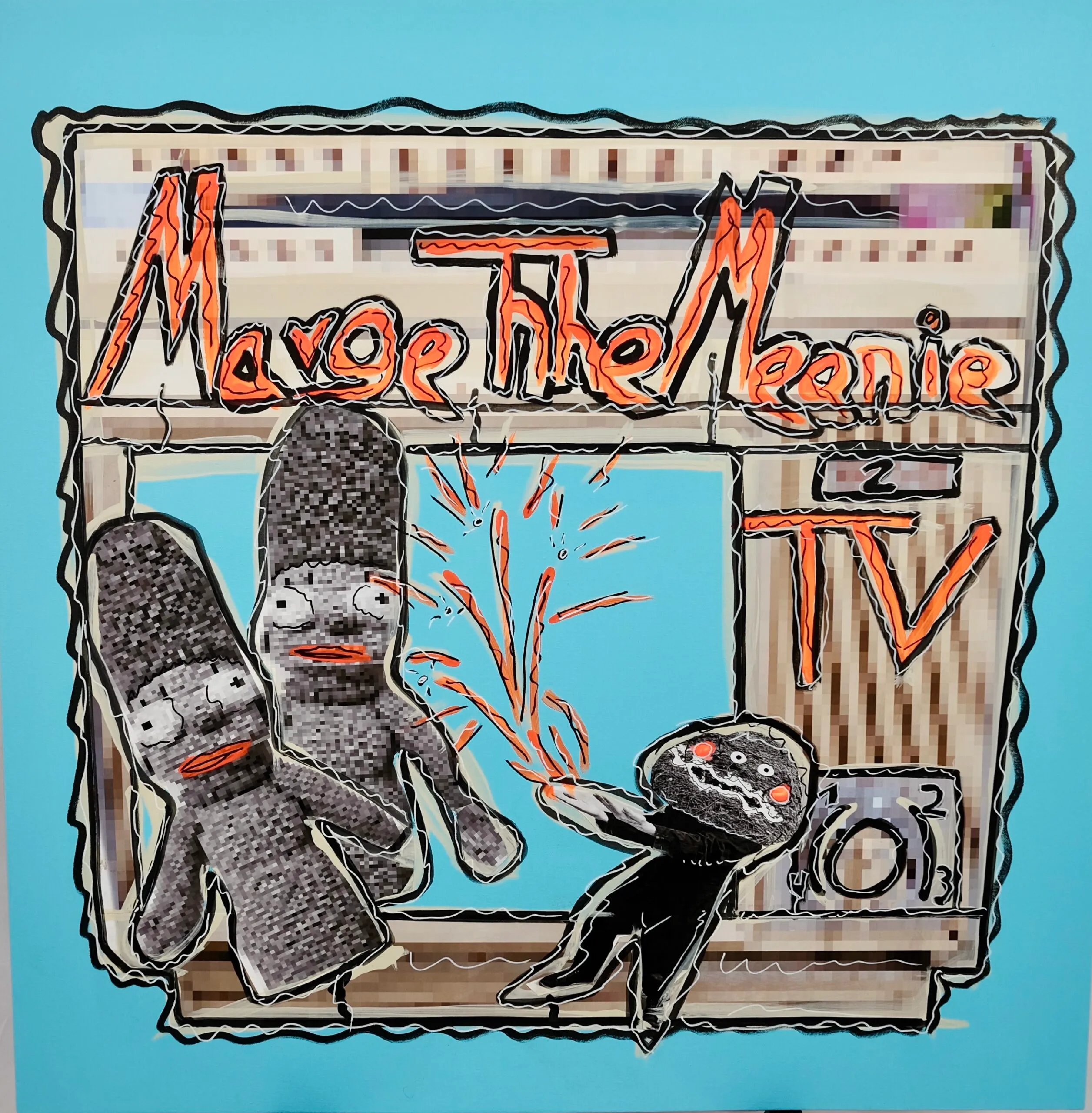 **Short Summary** *The Real Pixel TV* is a painting series that presents the television as a symbol of a fragmented media reality. Pixelated, grainy, and collage-like visuals reflect the constant sensory overload of contemporary media and the coexistence of interchangeable sensations. Beneath its stylized and sometimes humorous aesthetic lies a critical reflection on perception control, desensitization, and passive media consumption. The series invites viewers to question the boundary between r