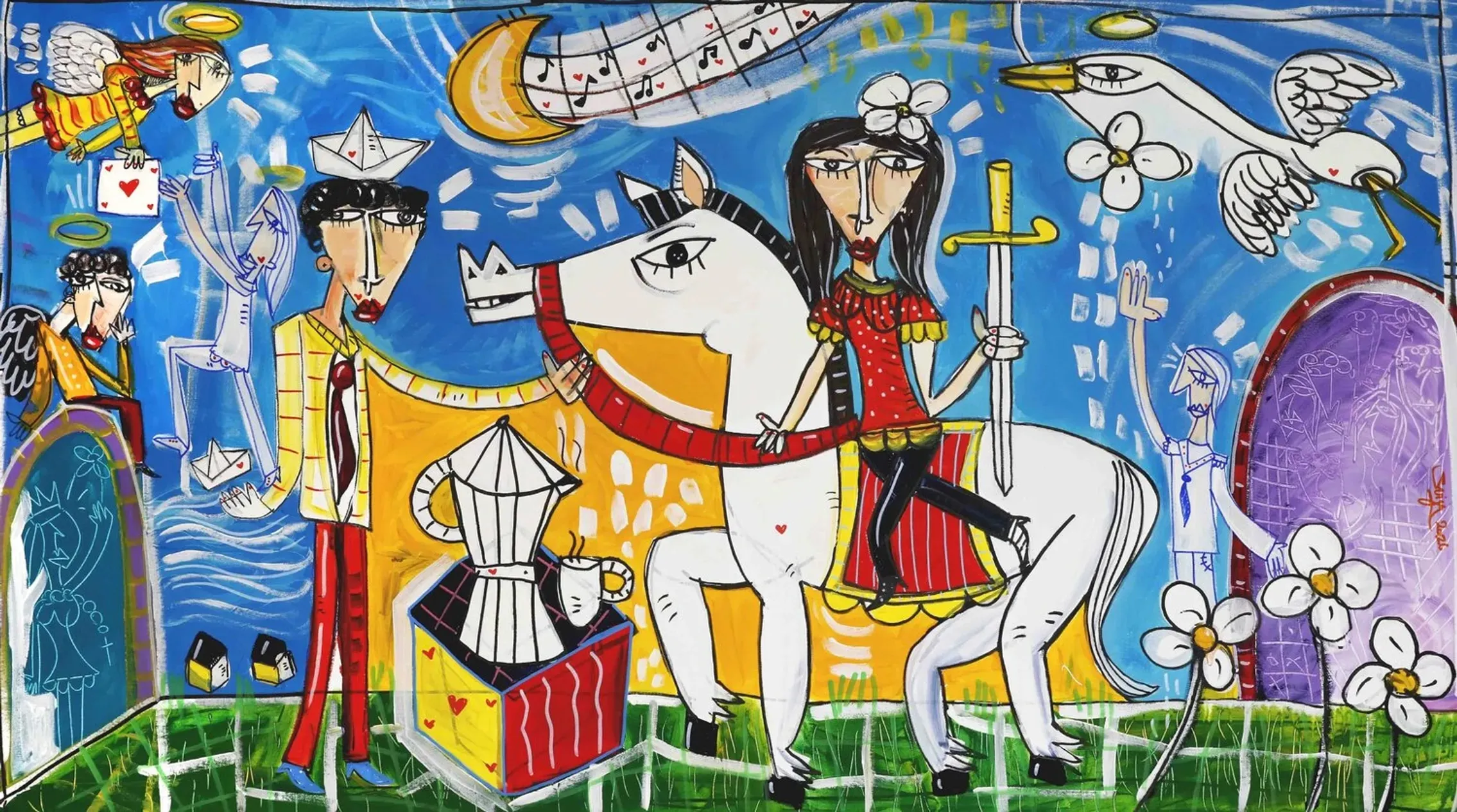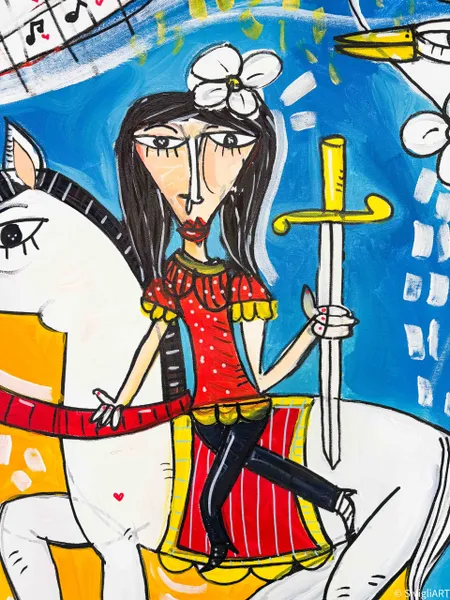 His style can be described as a form of contemporary cubism, drawing inspiration from masters like Picasso and Basquiat, yet maintaining a distinctly personal and unmistakable visual language. Siviglia explores a wide range of themes — love, conflict, female portraits, surreal and intricate compositions, as well as still lifes and religious subjects. His body of work is vast, featuring paintings in many different formats, shapes, and dimensions.