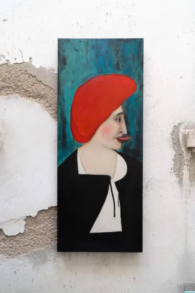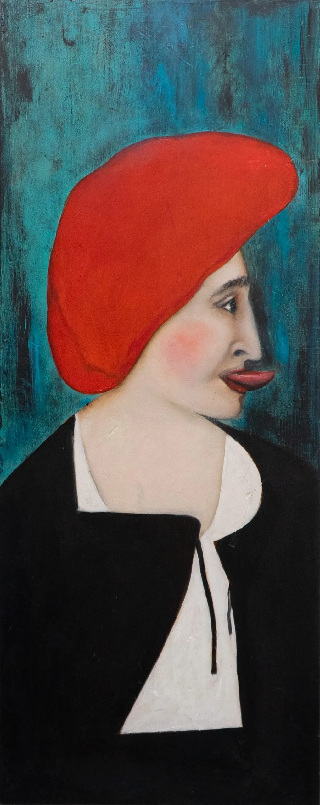 Questa serie di ritratti, indaga sulla psicologia dei personaggi. Il giovane menestrello diverte il pubblico con i suoi stravaganti copricapi e le sue buffe movenze.
