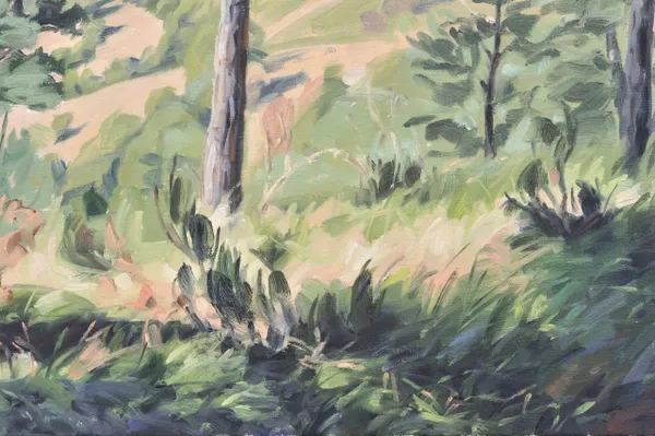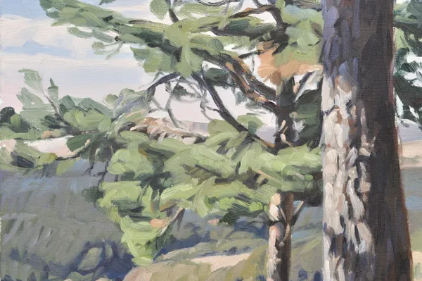 A warm day at the end of summer. In the shade of the pine trees, the still, heavy air is fragrant with resin drawn from the bark by the sun.