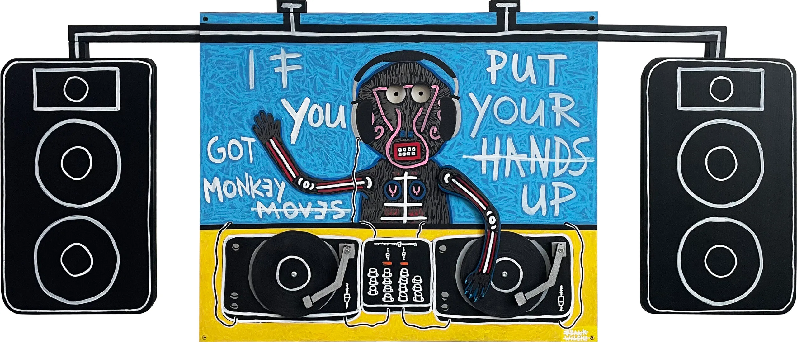 Frank Willems creates art that is constantly evolving. His style is an eclectic mix of urban art, pop art, and neo-expressionism, in which he plays with visual language and text as an image. His work moves between humor and seriousness, chaos and structure, reality and absurdity. Willems works intuitively and spontaneously, driven by an unstoppable work ethic and a desire to break free from conventions.