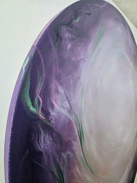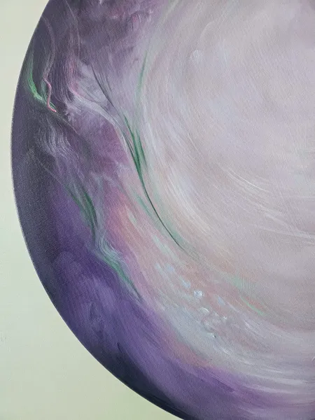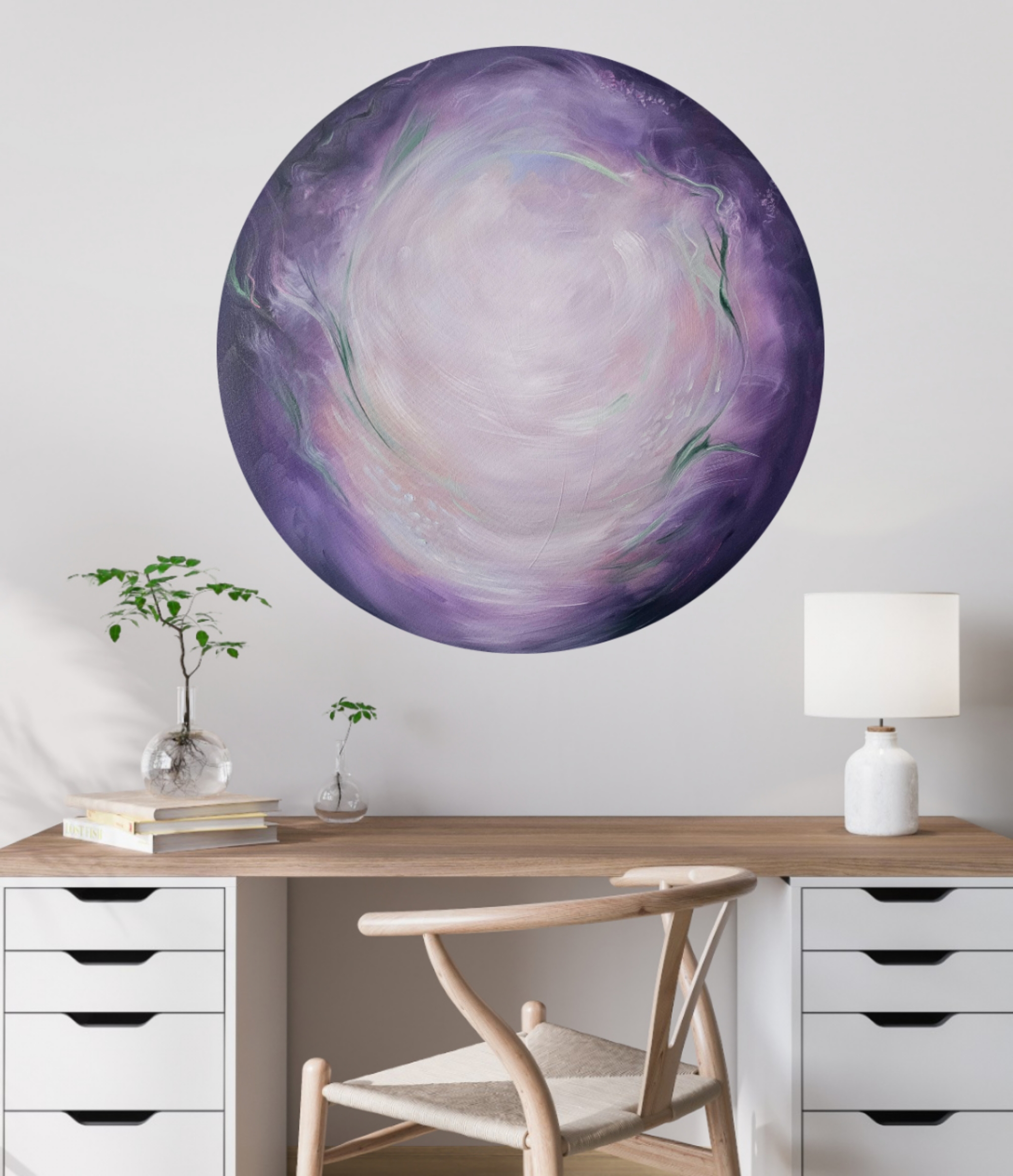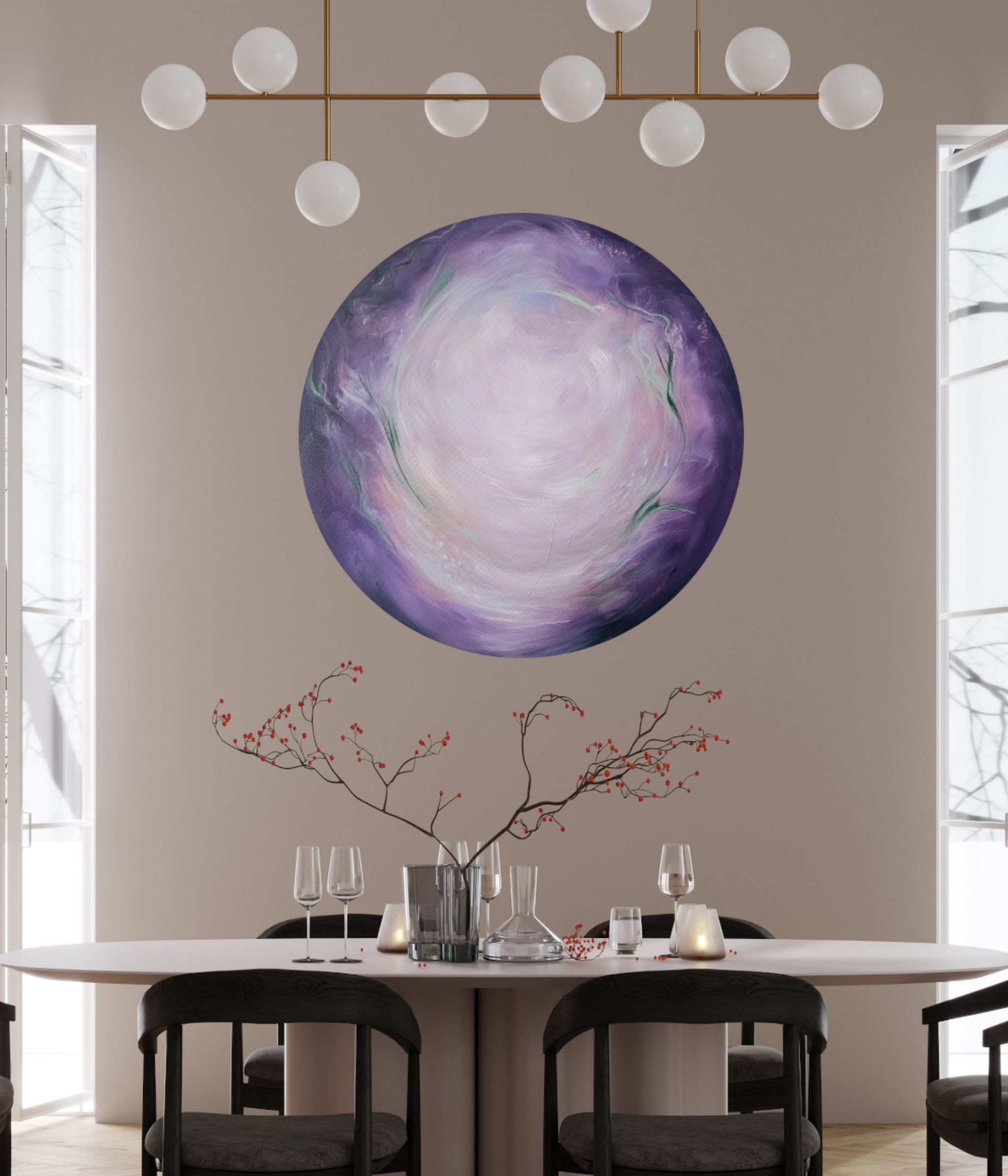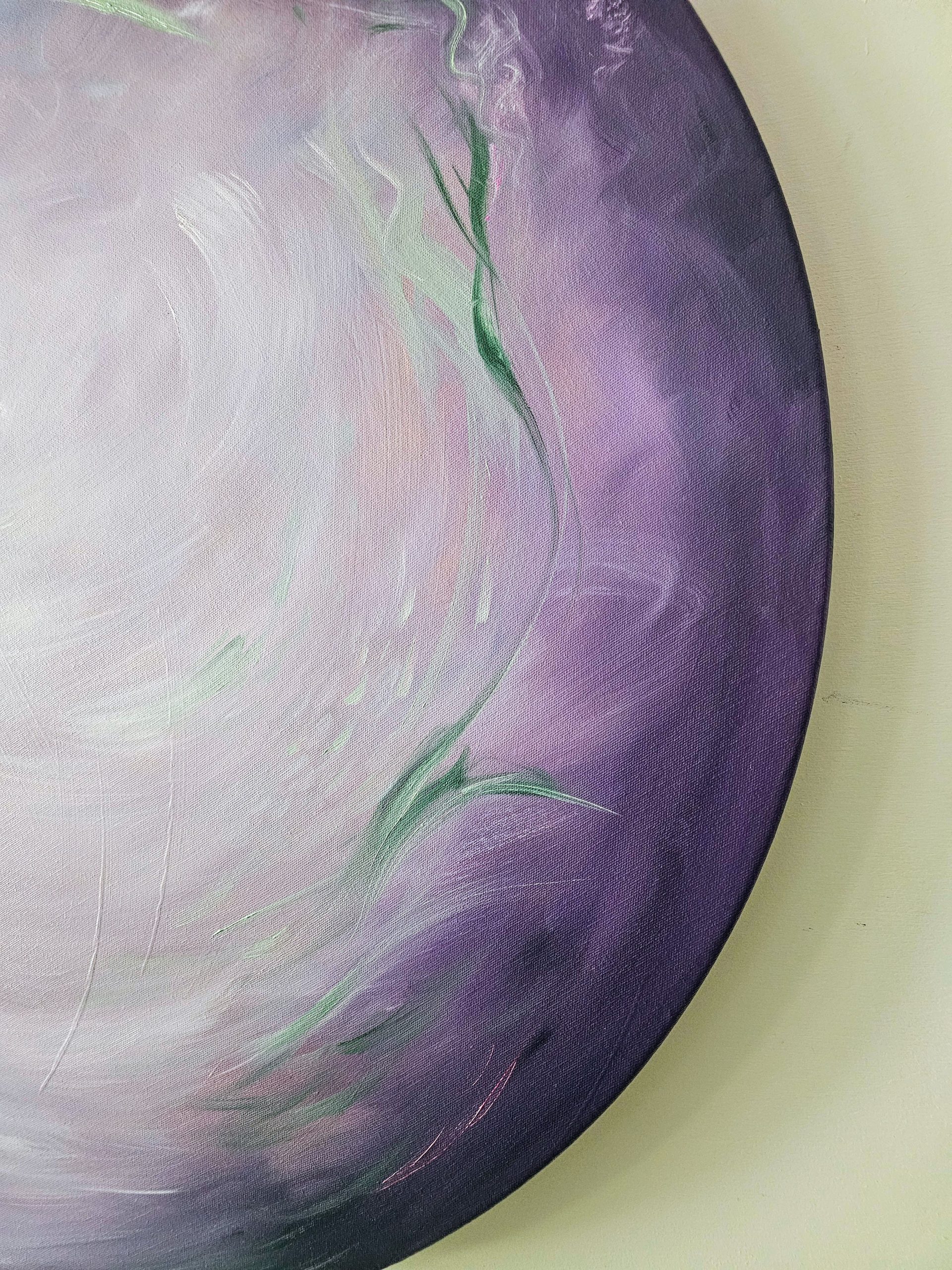A perfectly round jewel of a painting, inspired by the violet ring around the moon in the summer. A vision I see when I gaze with my eyes softly focused at the night sky.