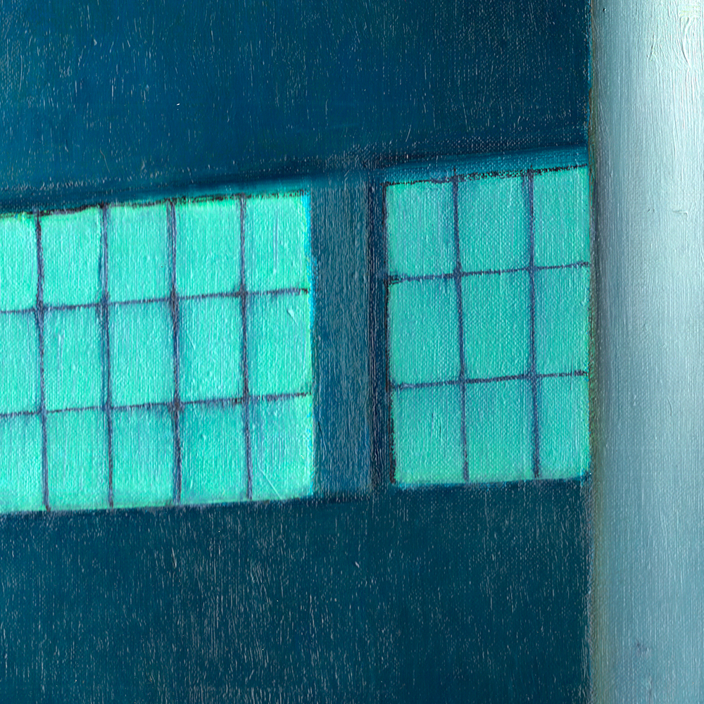 Here, I had a fairly precise mental image of a building at night, with greenish-tiled windows... The rest, including the snow and the character, came to me as I worked, as is often the case.