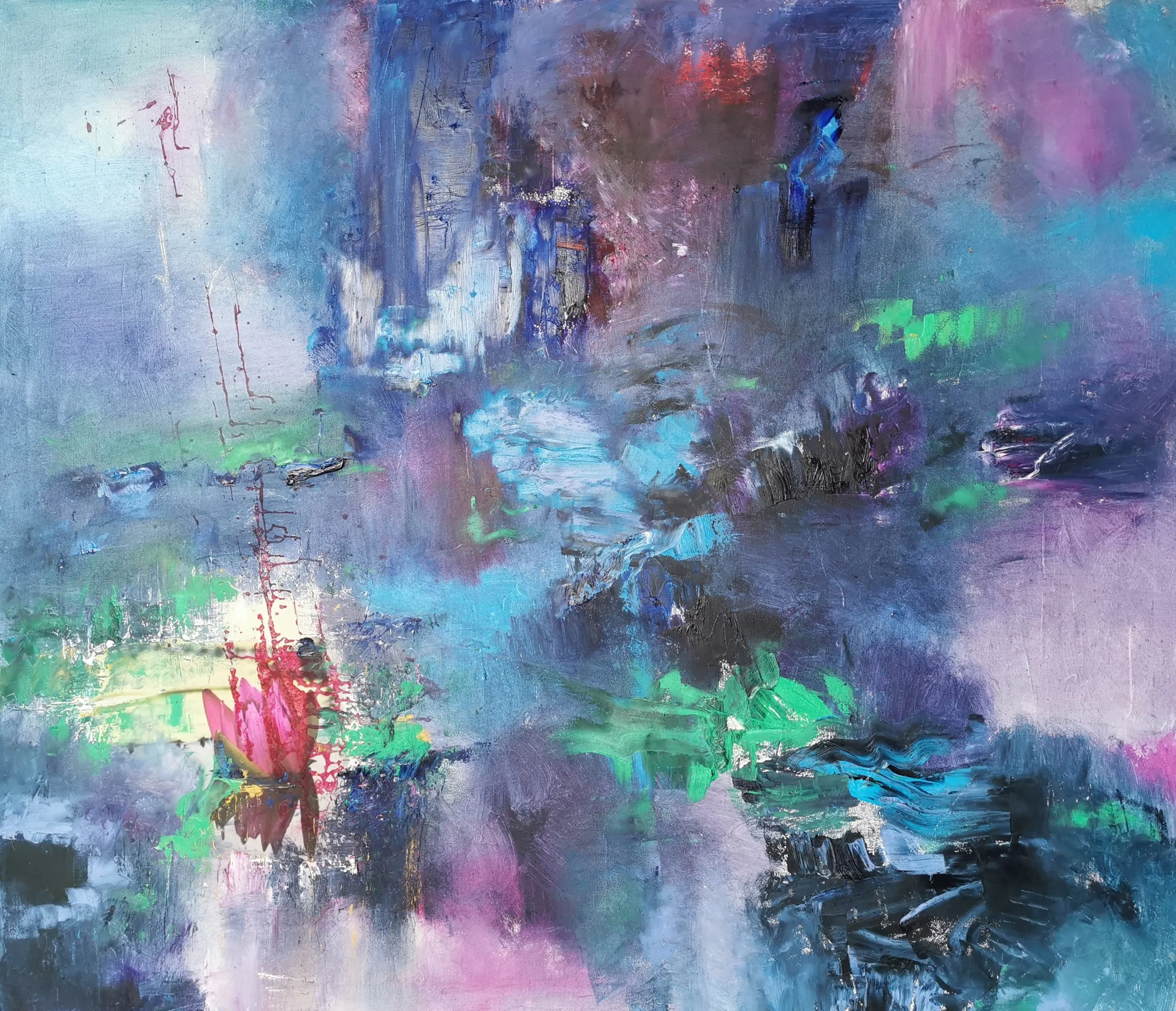 Murielle Argoud, an artist with French and Andalusian roots, comes from Lyon, where she began painting at a young age. Trained across Europe in the 1970s and 1980s—from France and Germany to Switzerland and Tuscany—she chose to step away from theory and draw her inspiration directly from nature. Her works blend oil and acrylic with materials such as lava, sand, gold leaf, and collage, creating powerful, textured compositions where natural forces—winds, snow, waterfalls, and glowing night skies—meet a vibrant, mystical light. Known for combining dramatic surfaces with a soft, poetic atmosphere, she has exhibited in over 50 solo shows and international art fairs, including New York and Venice. Her works are held in private and public collections, and even in a chapel in Geneva. Constantly seeking new horizons, she feels at home wherever art and inspiration meet.