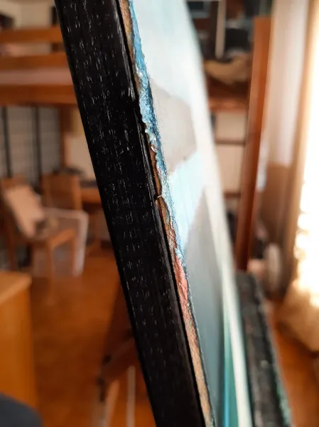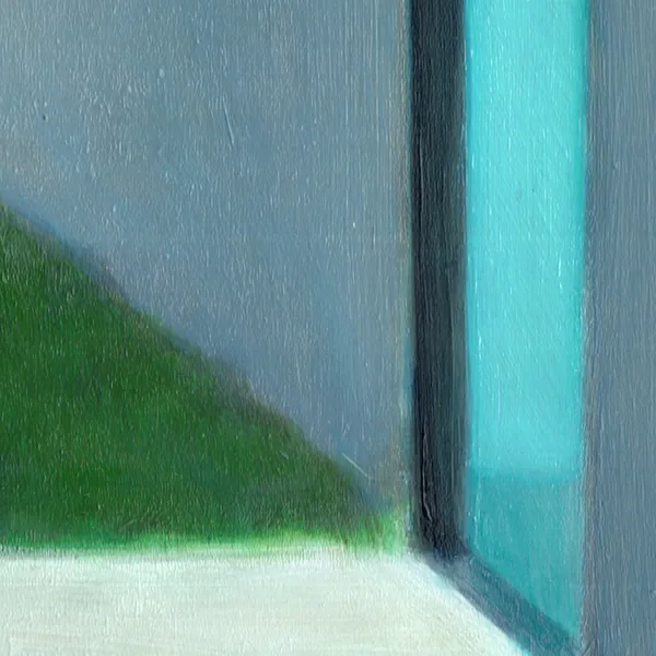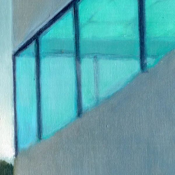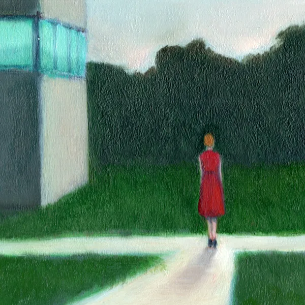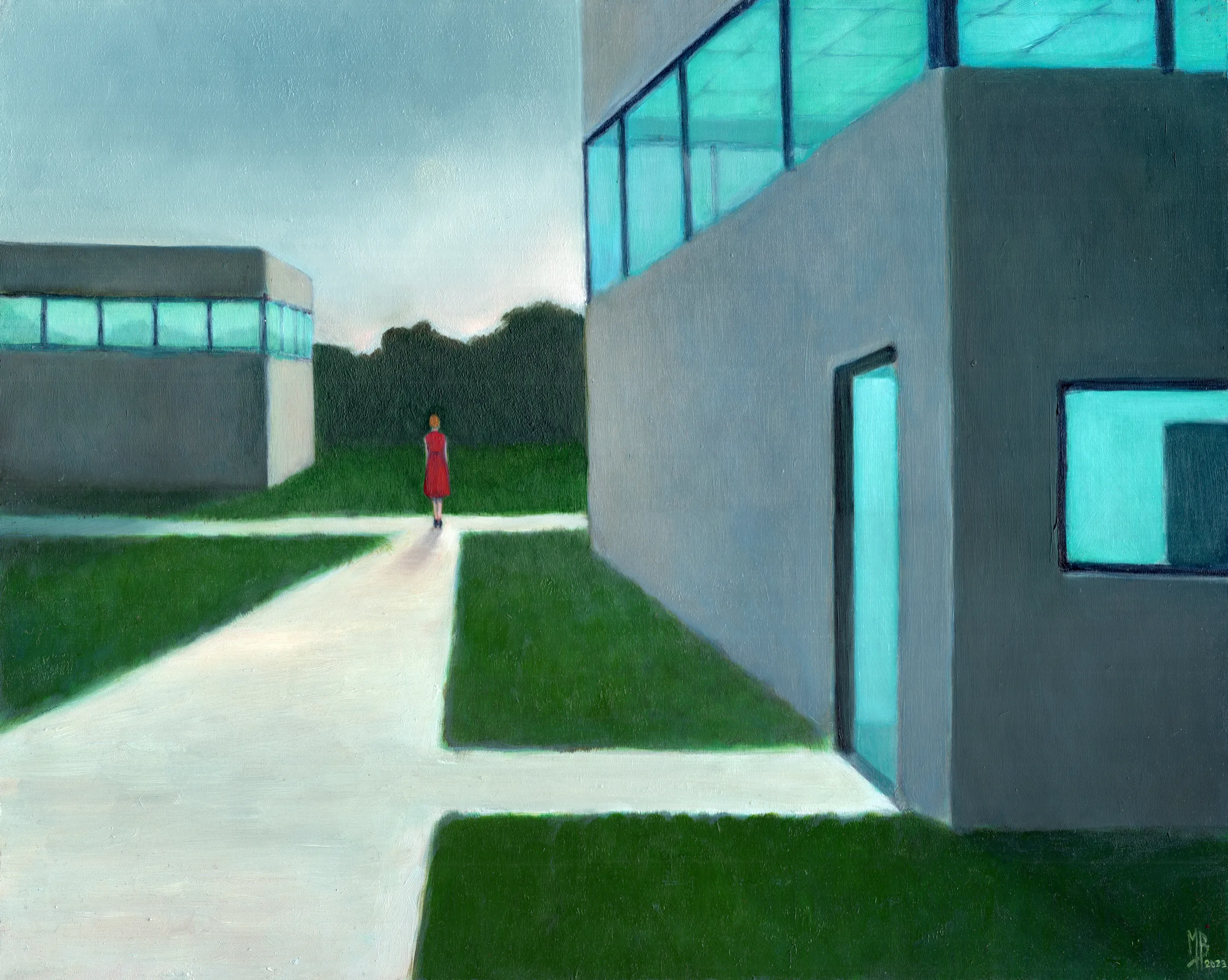 This small painting mainly served as a test for a new type of panel as a medium... I started painting shapes somewhat randomly, and the buildings gradually emerged, creating the semi-realistic, semi-dreamlike atmosphere found in many of my paintings.