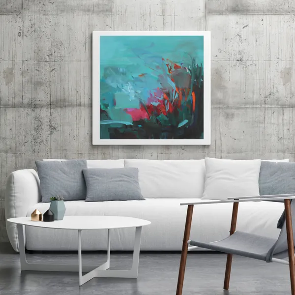 "Piece by piece" is an original, abstract painting that captures the essence of spring. High-pigmented colors from Switzerland come alive on the canvas, creating an expressive and vibrant landscape. The painterly abstraction evokes a sense of a floral garden, with hues of blue, green, orange and red intertwining to create a captivating visual experience. The artwork has a matte finish including UV protection and is ready to hang. It will be shipped in a wooden crate.
